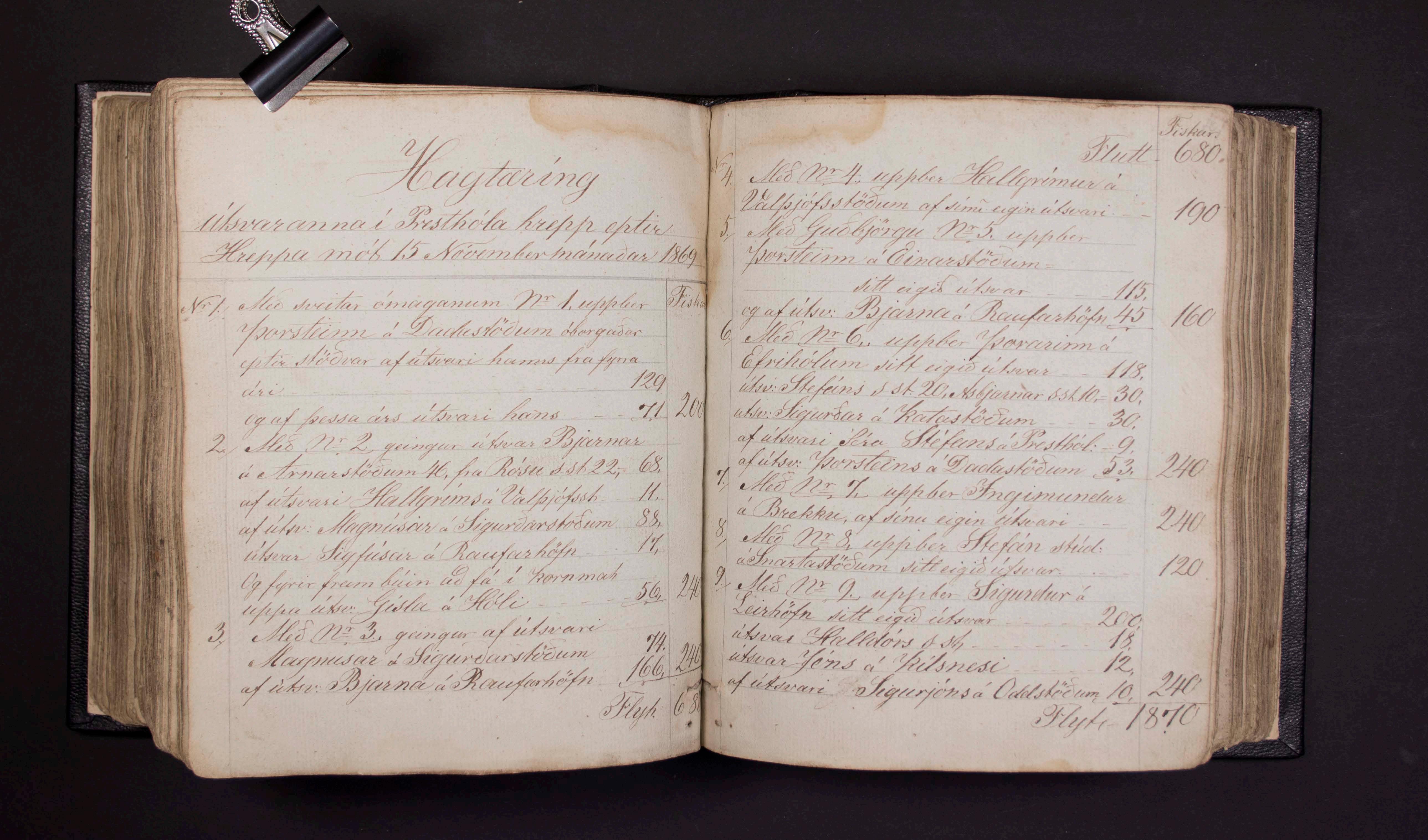 HRP-369/1 Presthólahreppur. Fátækra- og ómagagjöld, skýrslur um búnaðarástand o.fl. 1836-1877.