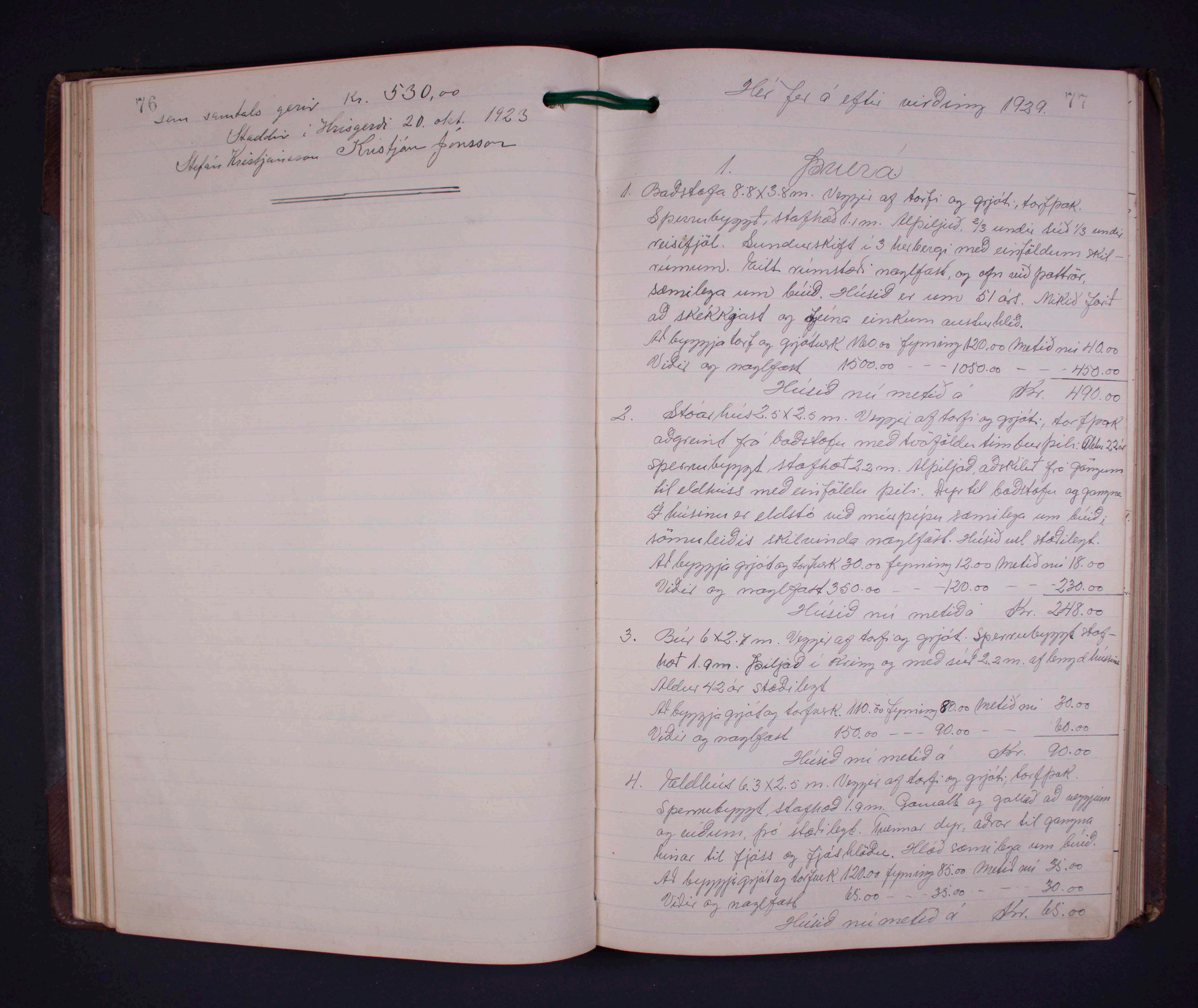 HRP-38-2. Hálshreppur. Virðingabók brunabótasjóðs Hálshrepps 1918-1933.