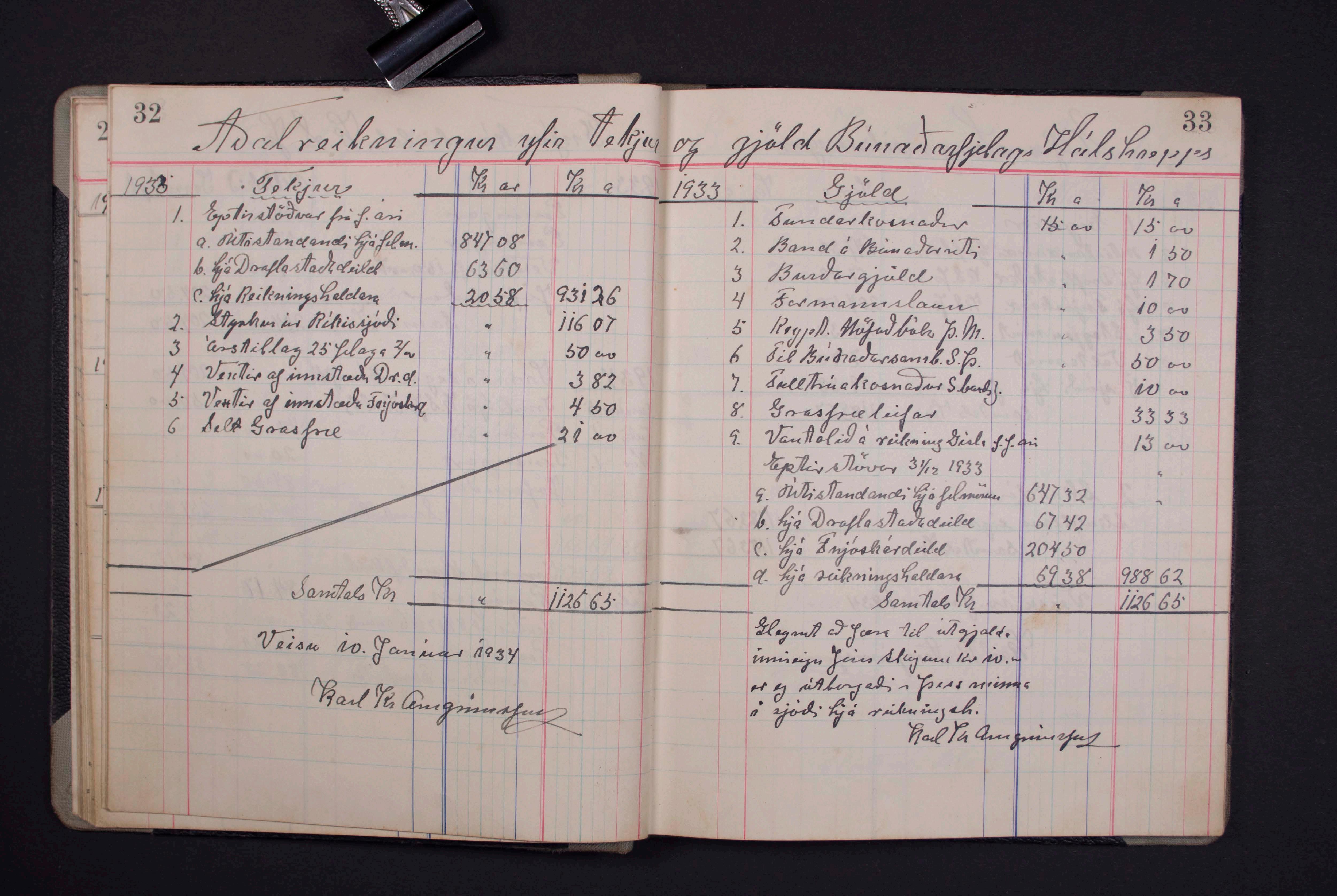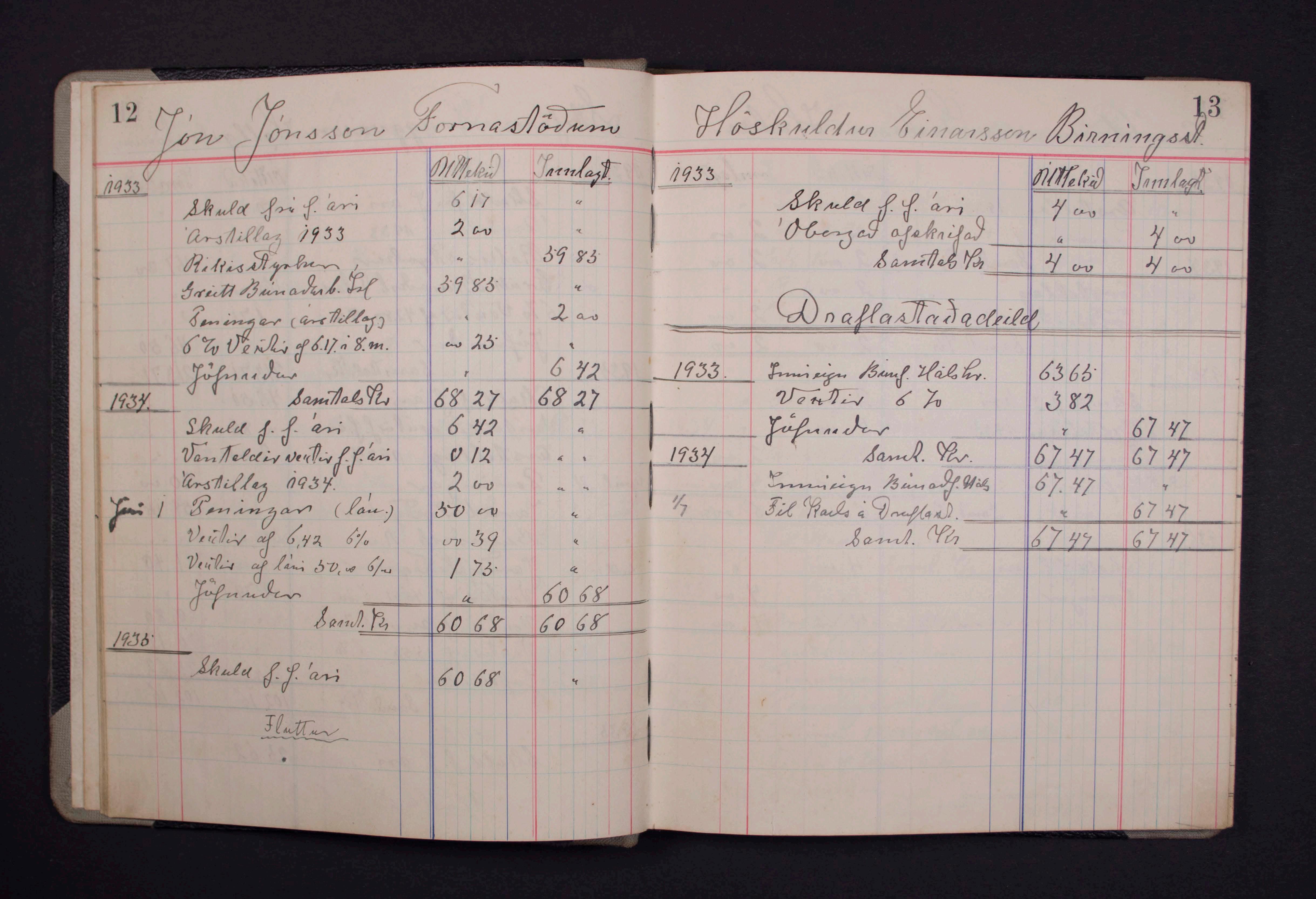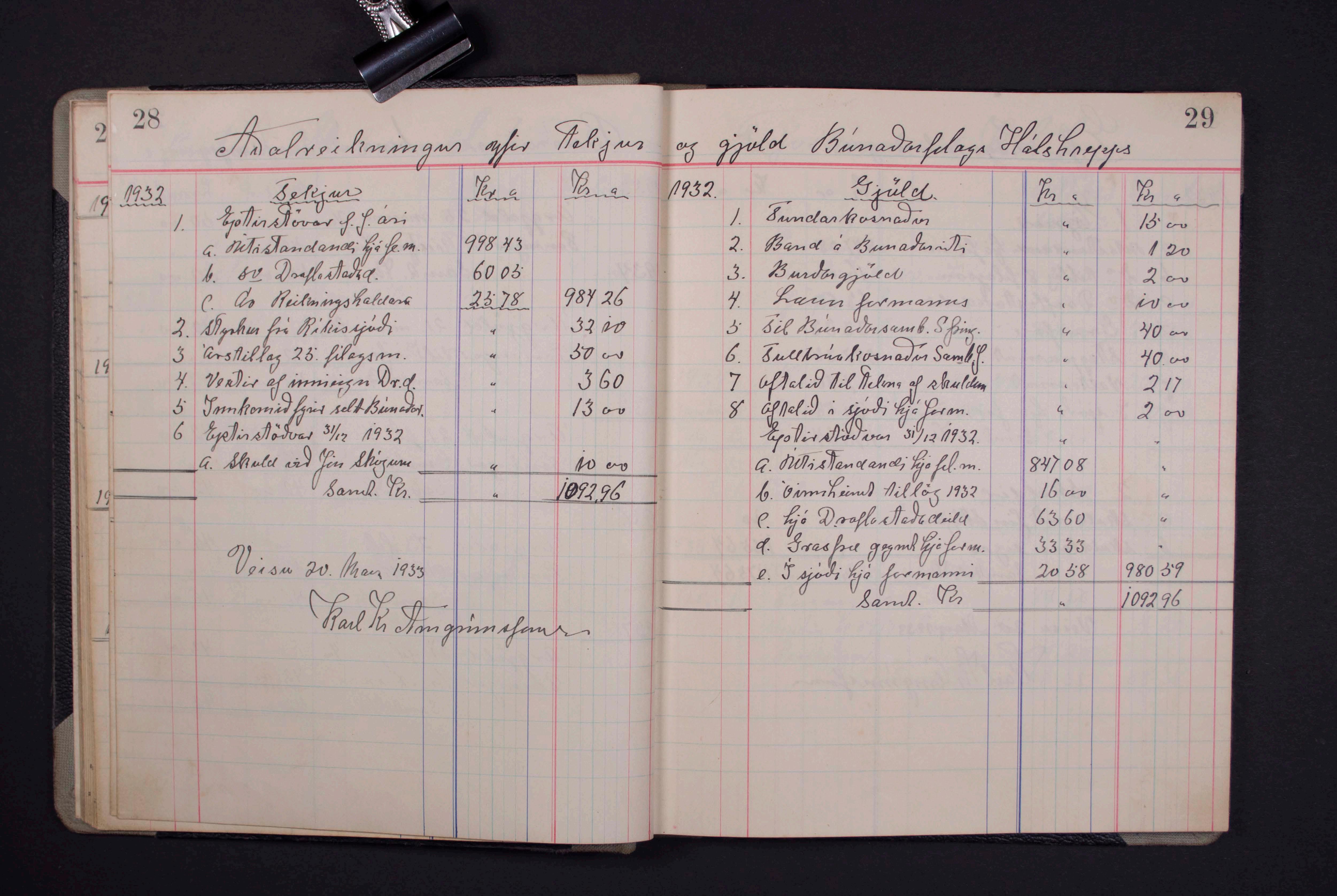 HRP-388/4 Hálshreppur. Búnaðarfélag Hálshrepps - Viðskiptabók 1933-1942.