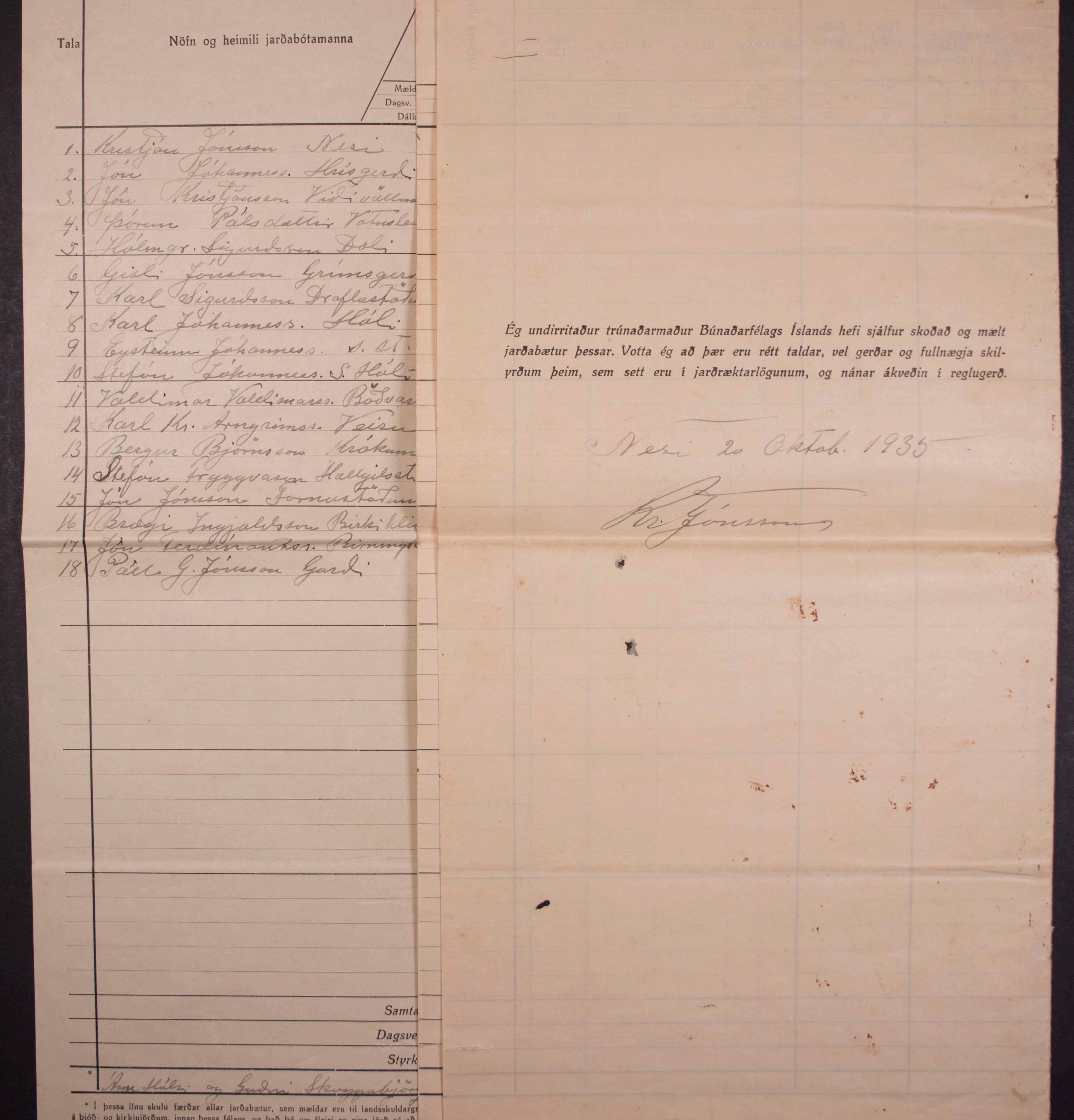 HRP-389/2 Hálshreppur. Búnaðarfélag Hálshrepps - Jarðabótaskýrslur 1930-1939.