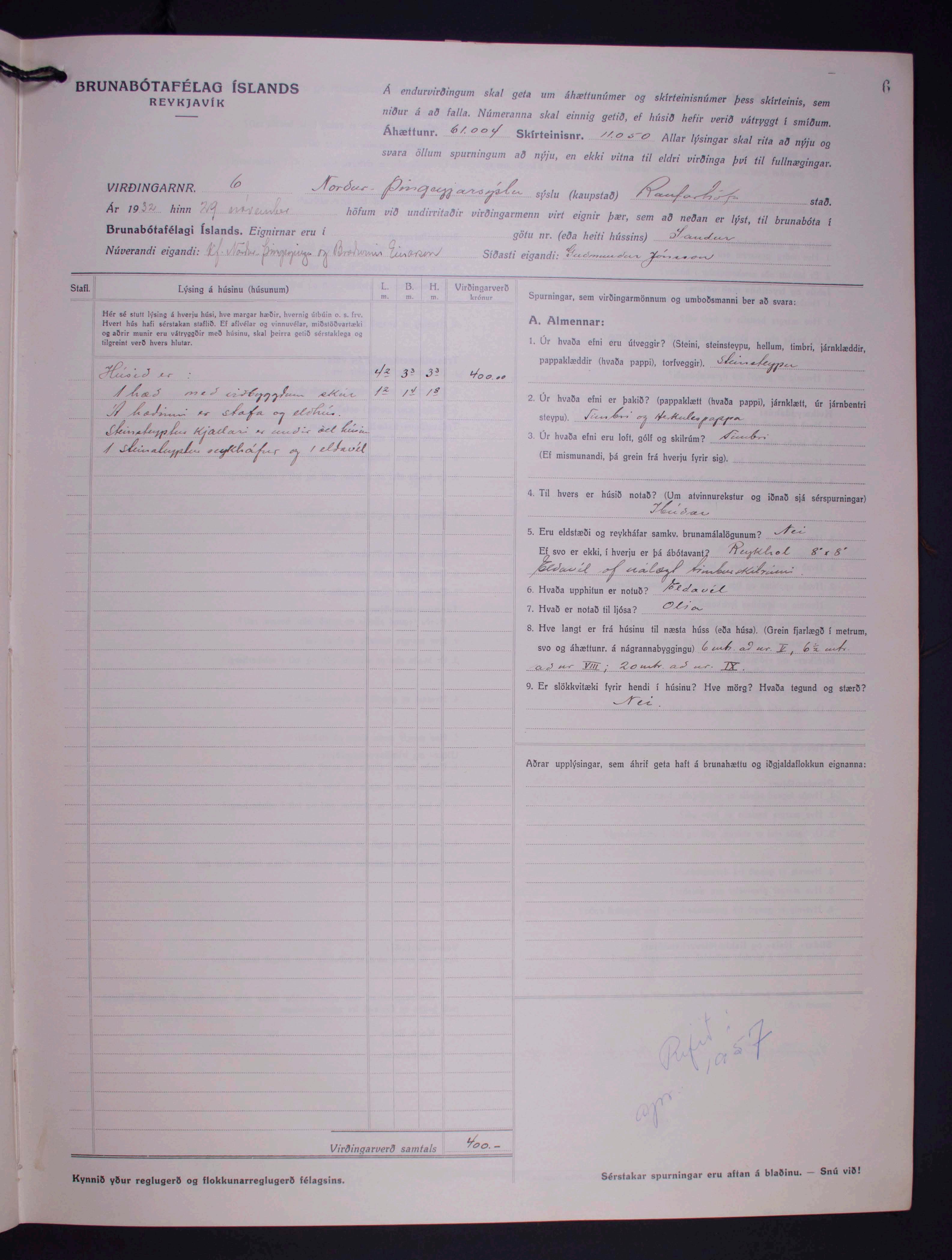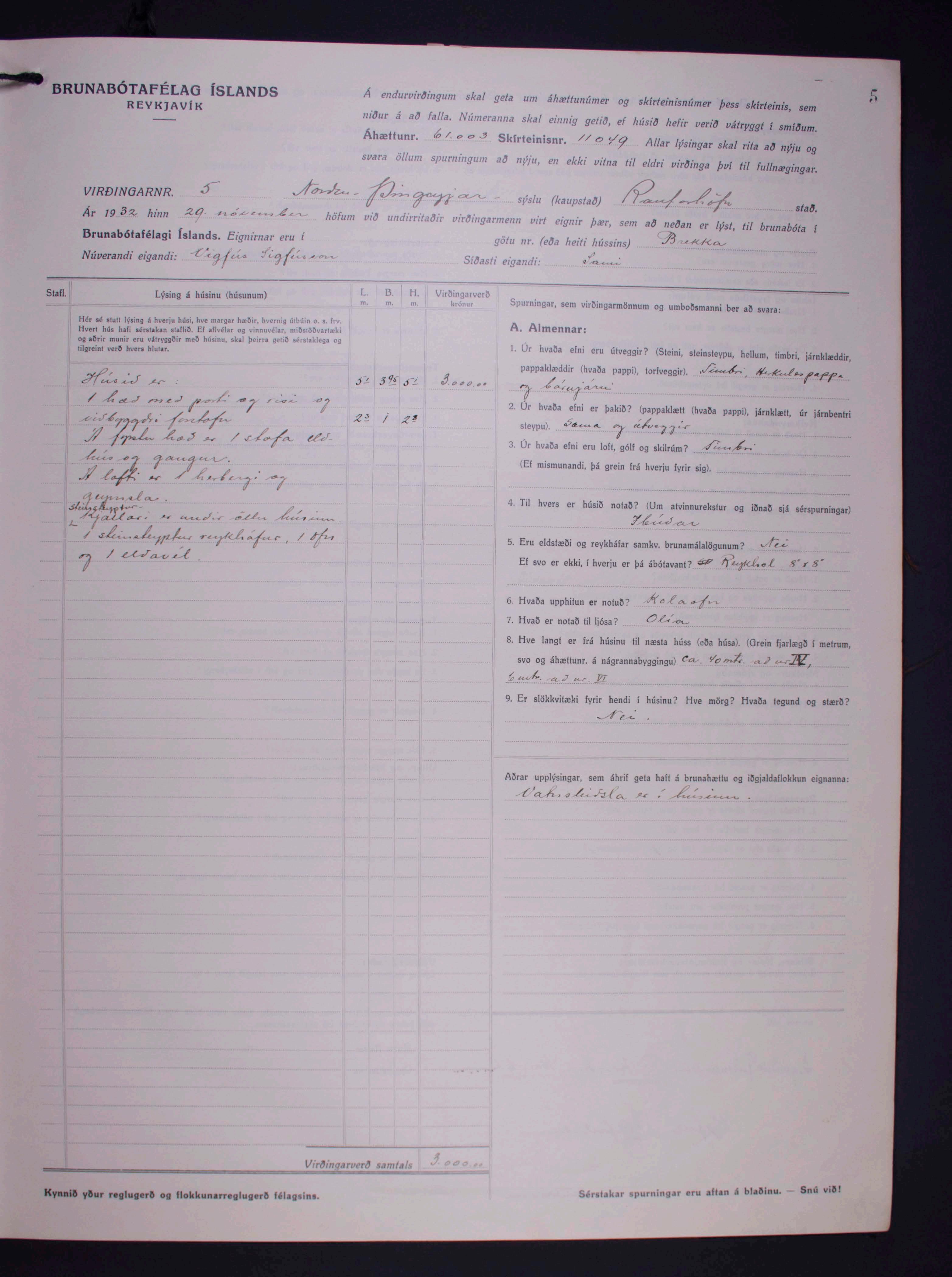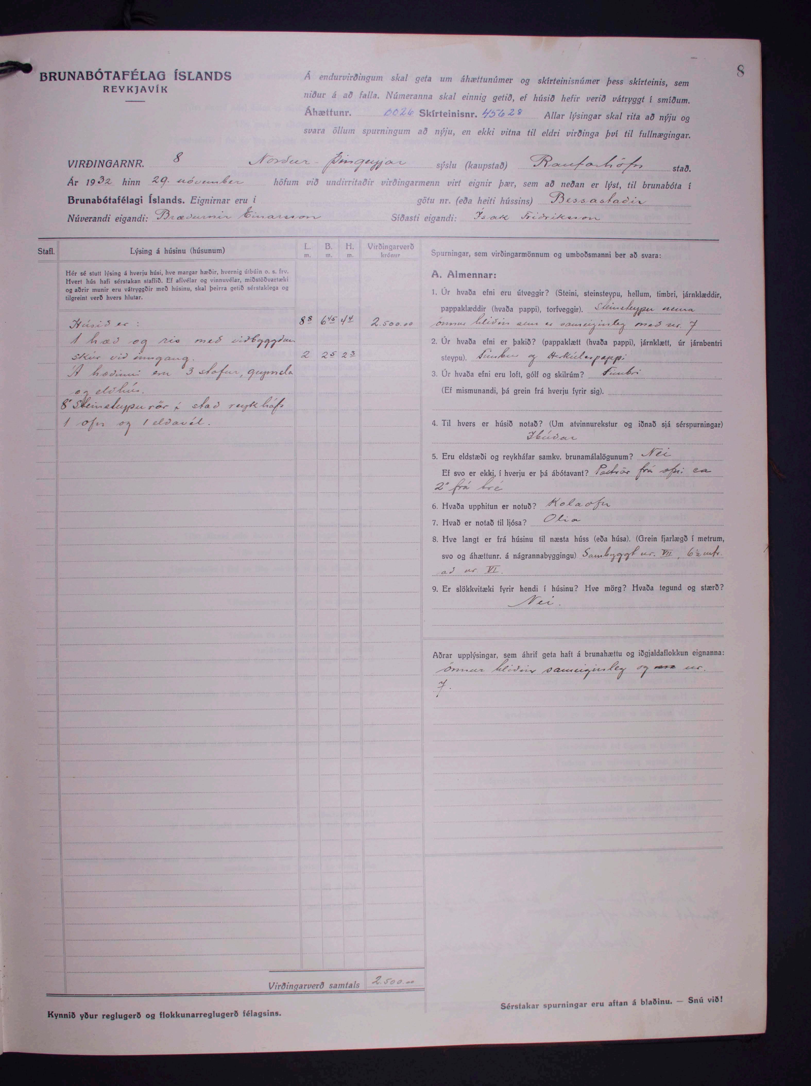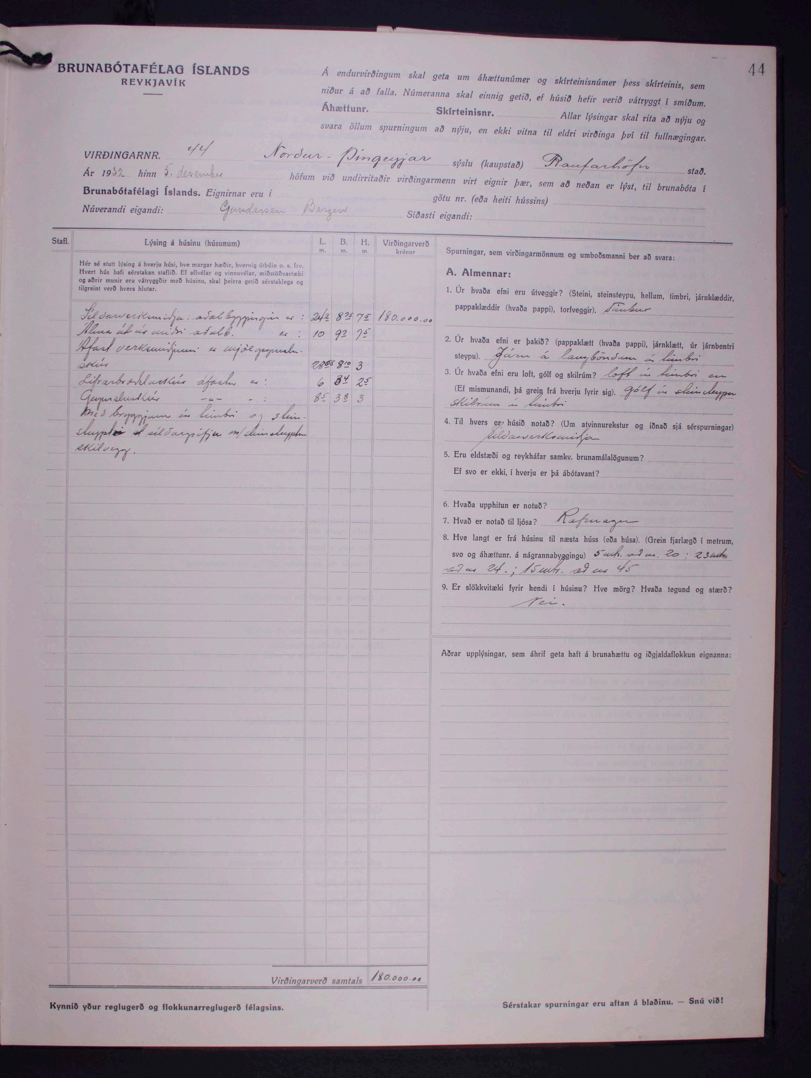 HRP-455-1 Raufarhafnarhreppur. Virðingabók Brunabótafélags Íslands fyrir Raufarhafnarumboð 1932-1933