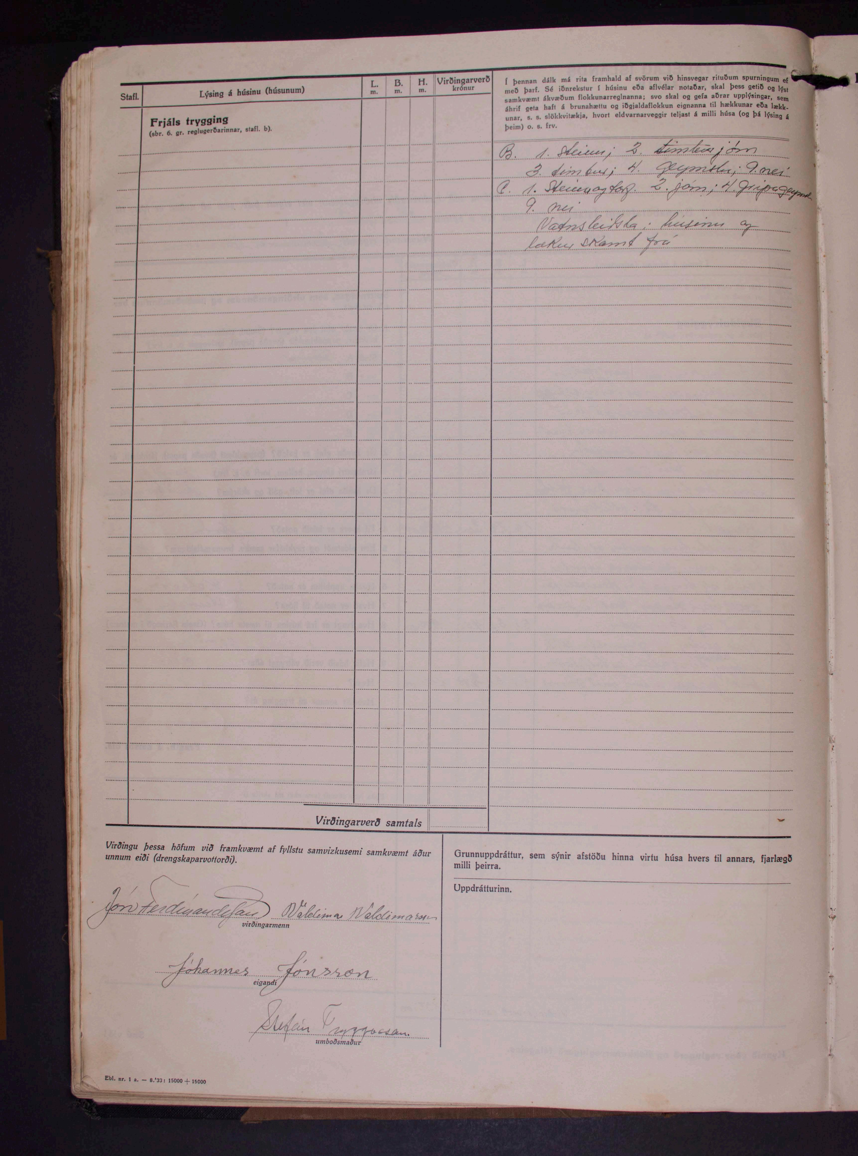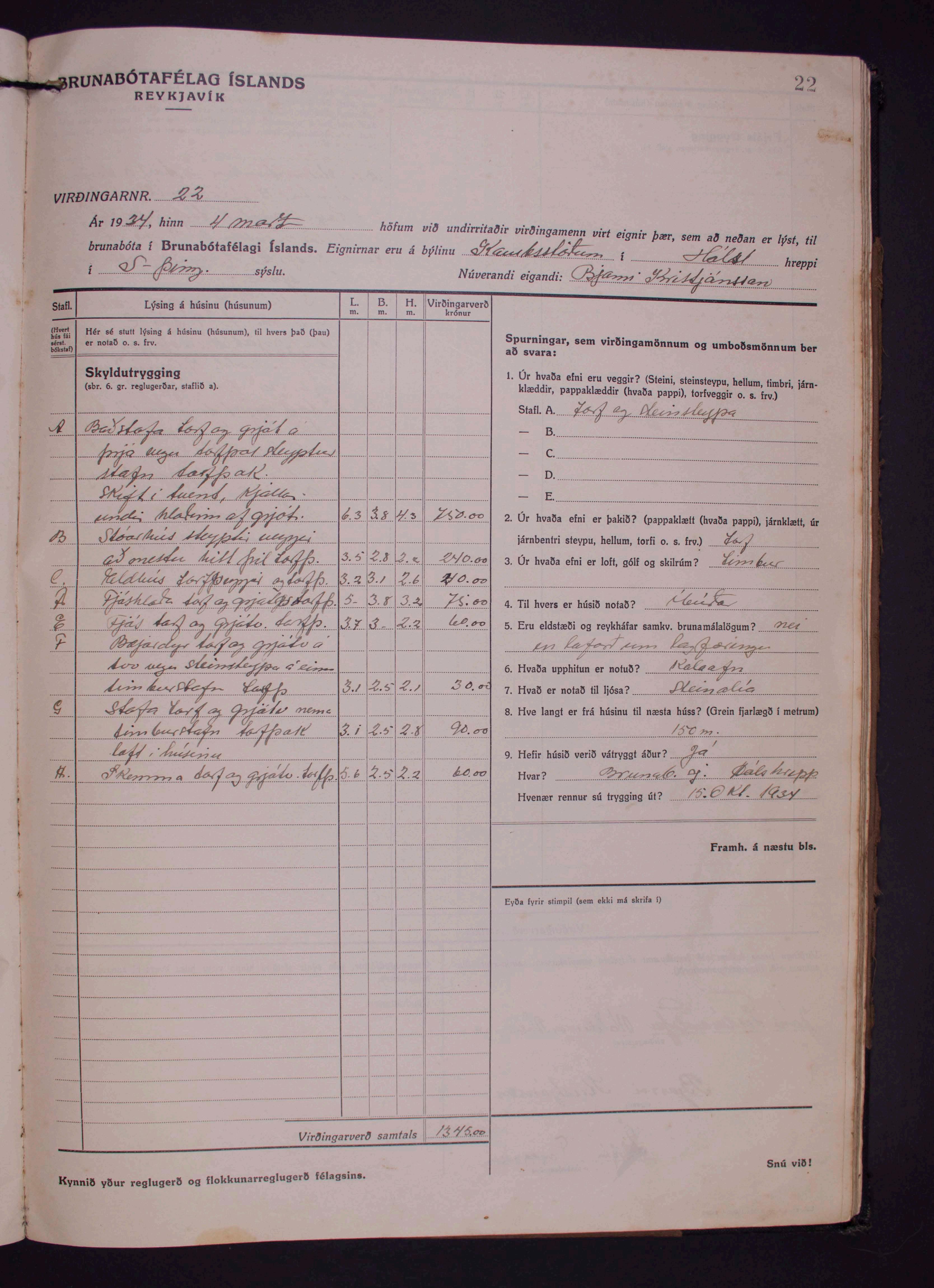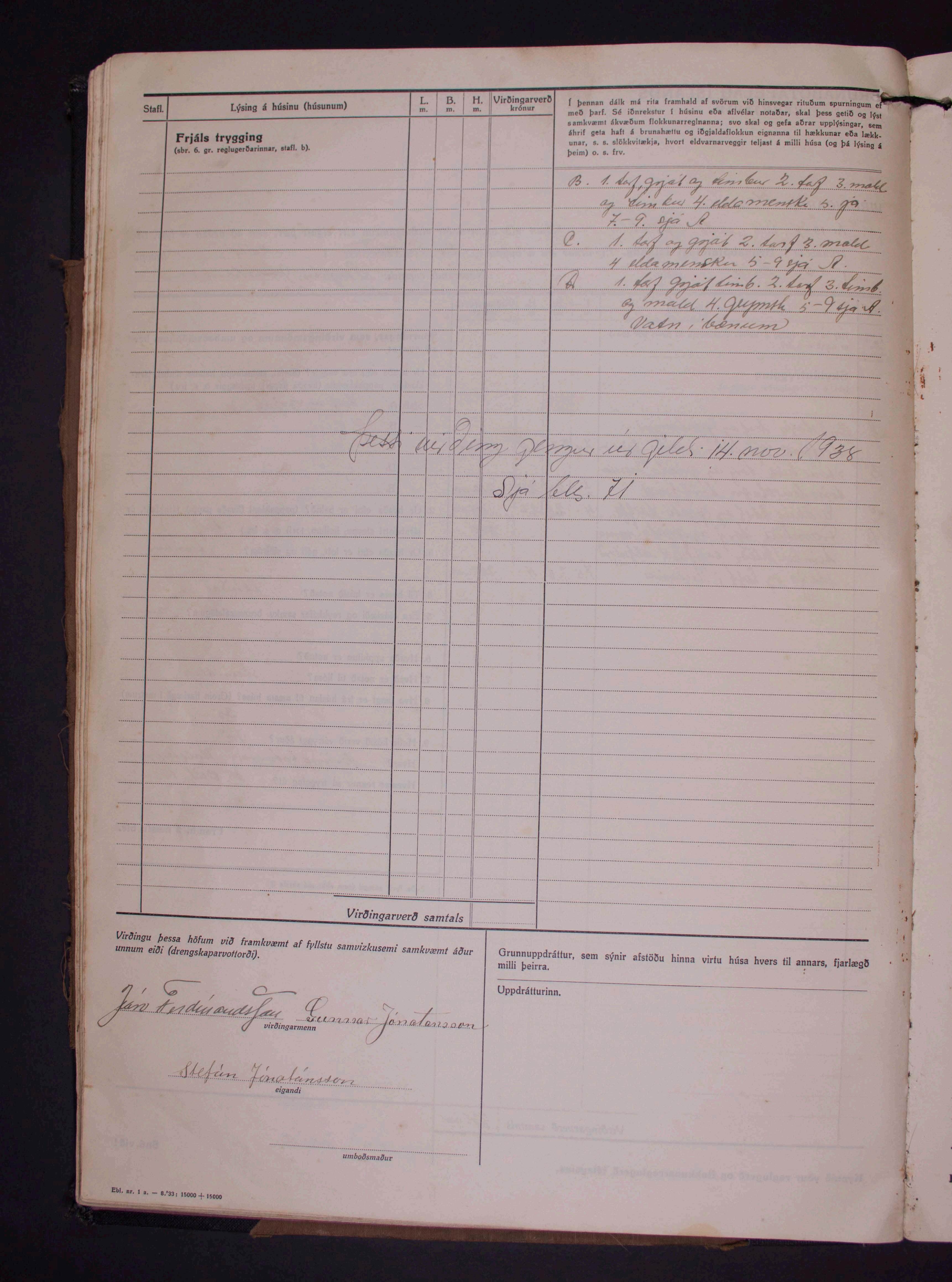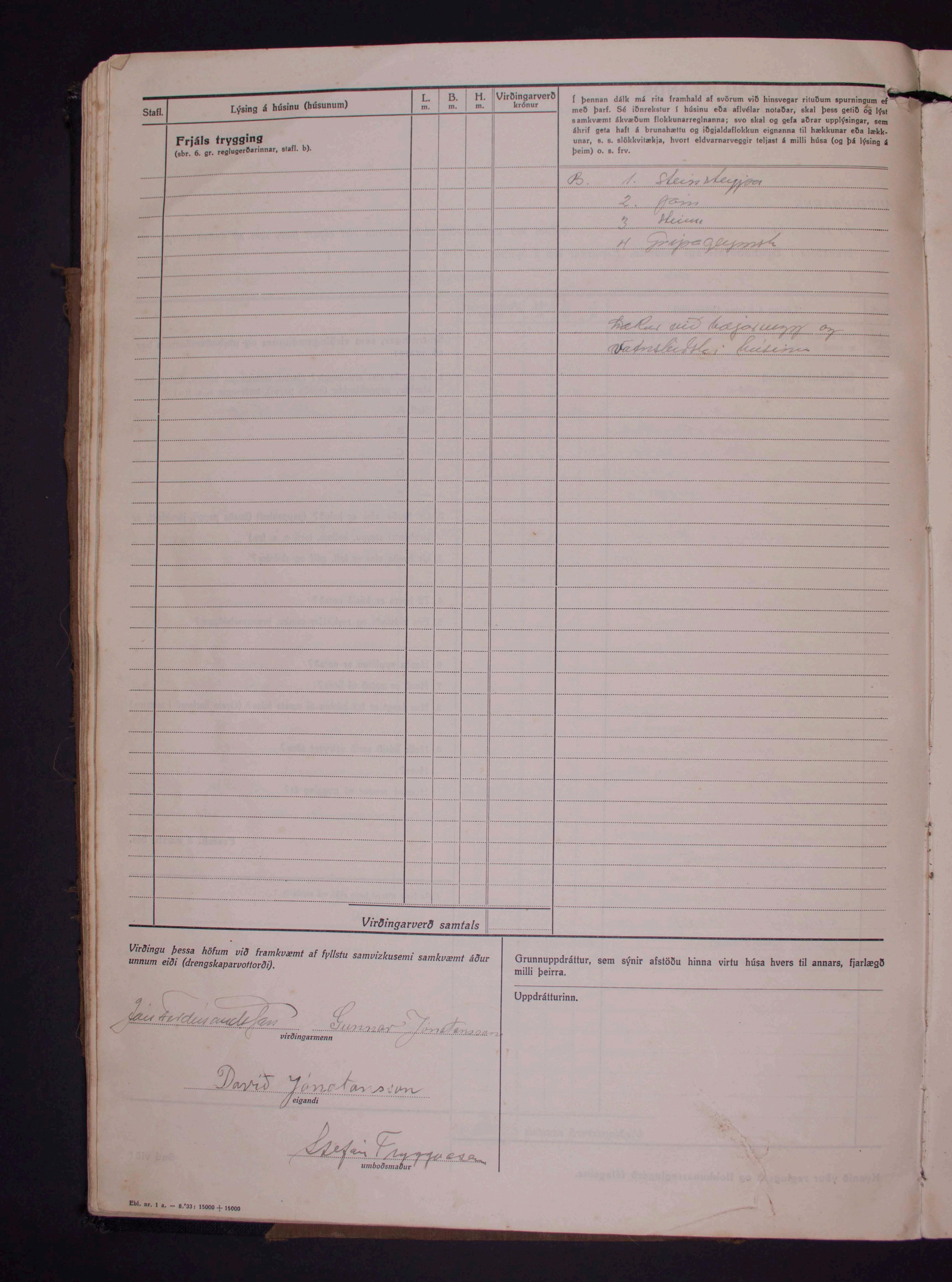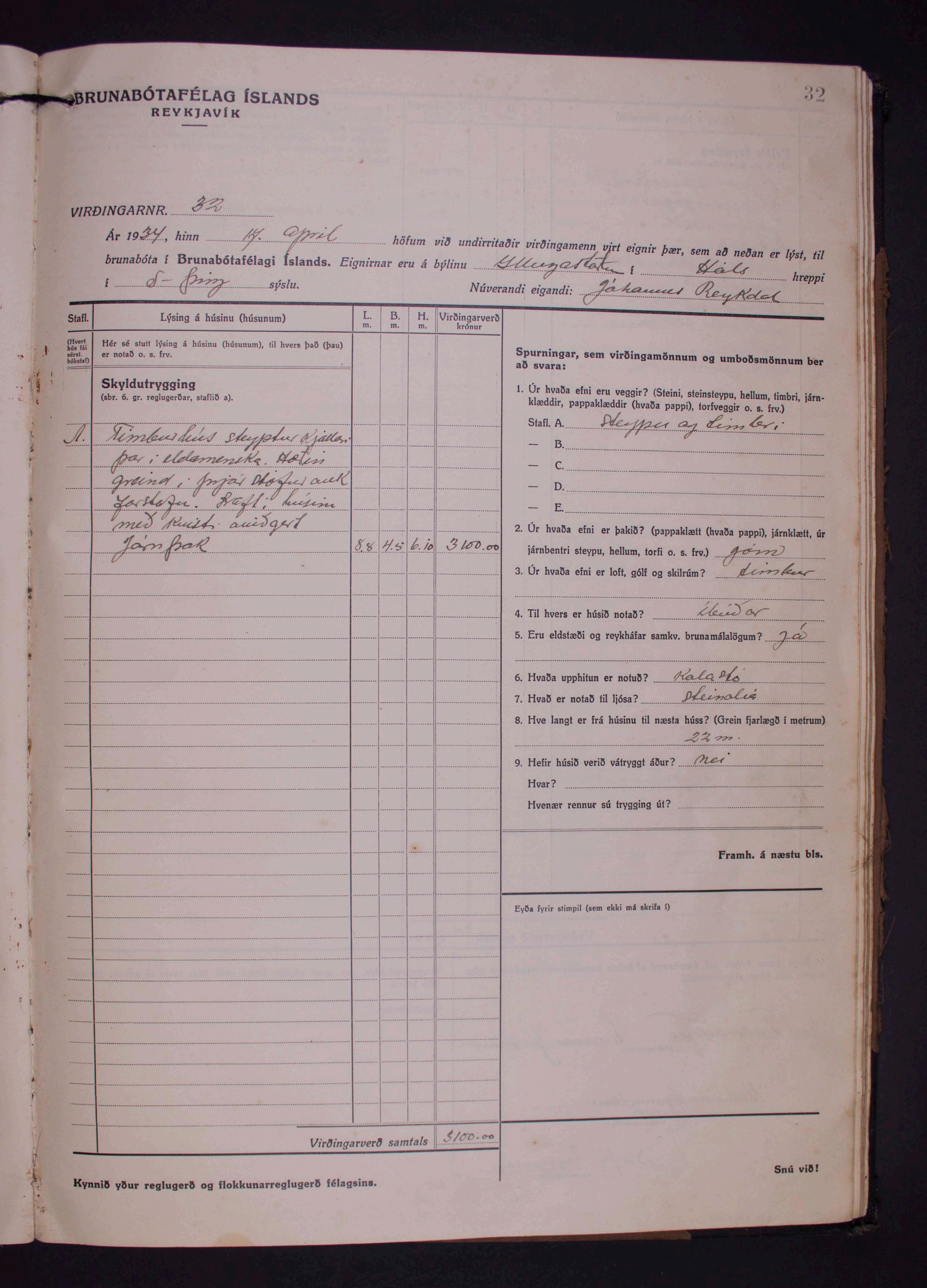 HRP-619-8 Hálshreppur. Virðingabók Brunabótafélags Íslands fyrir Hálshreppsumboð 1933-1940.