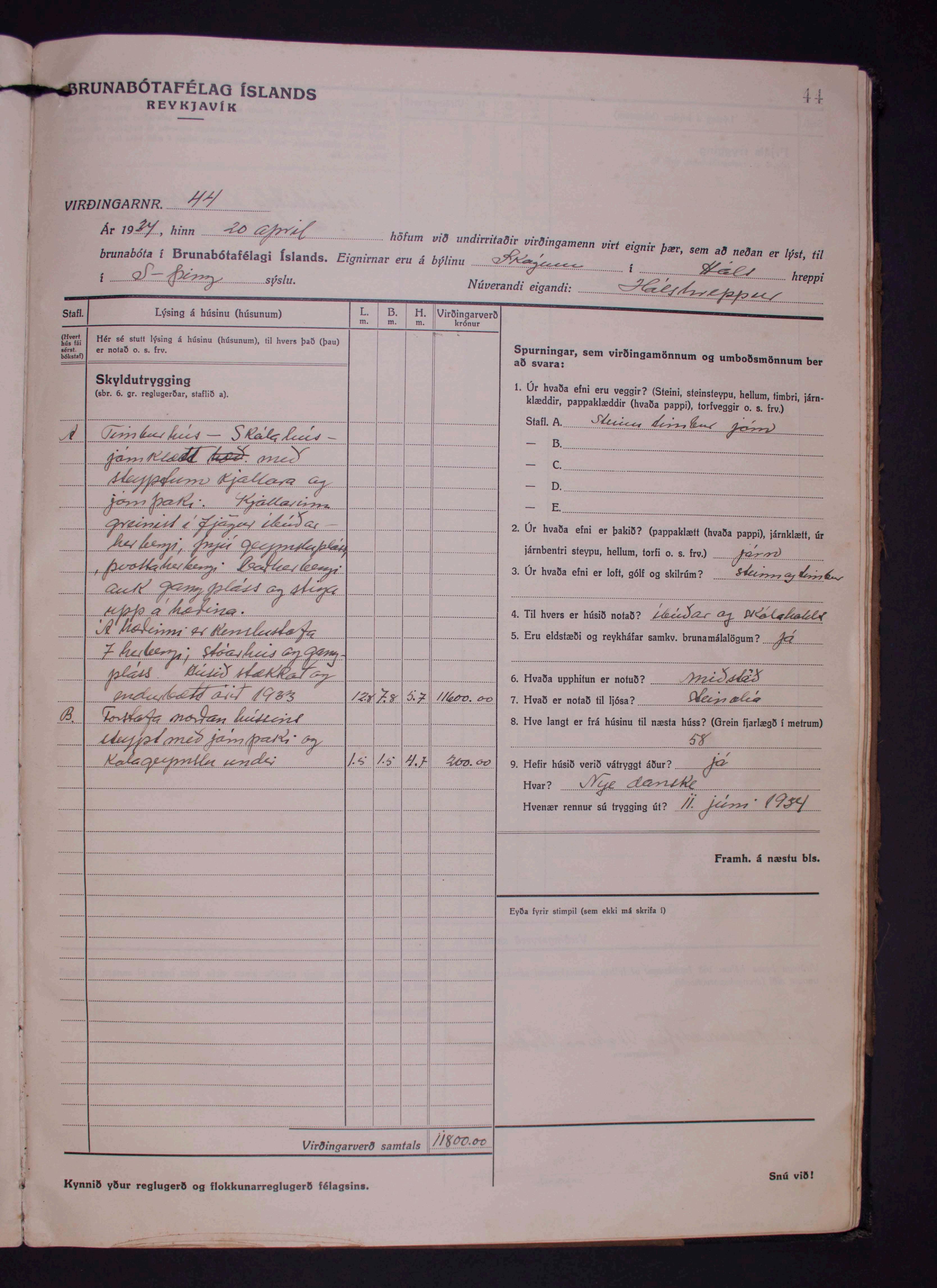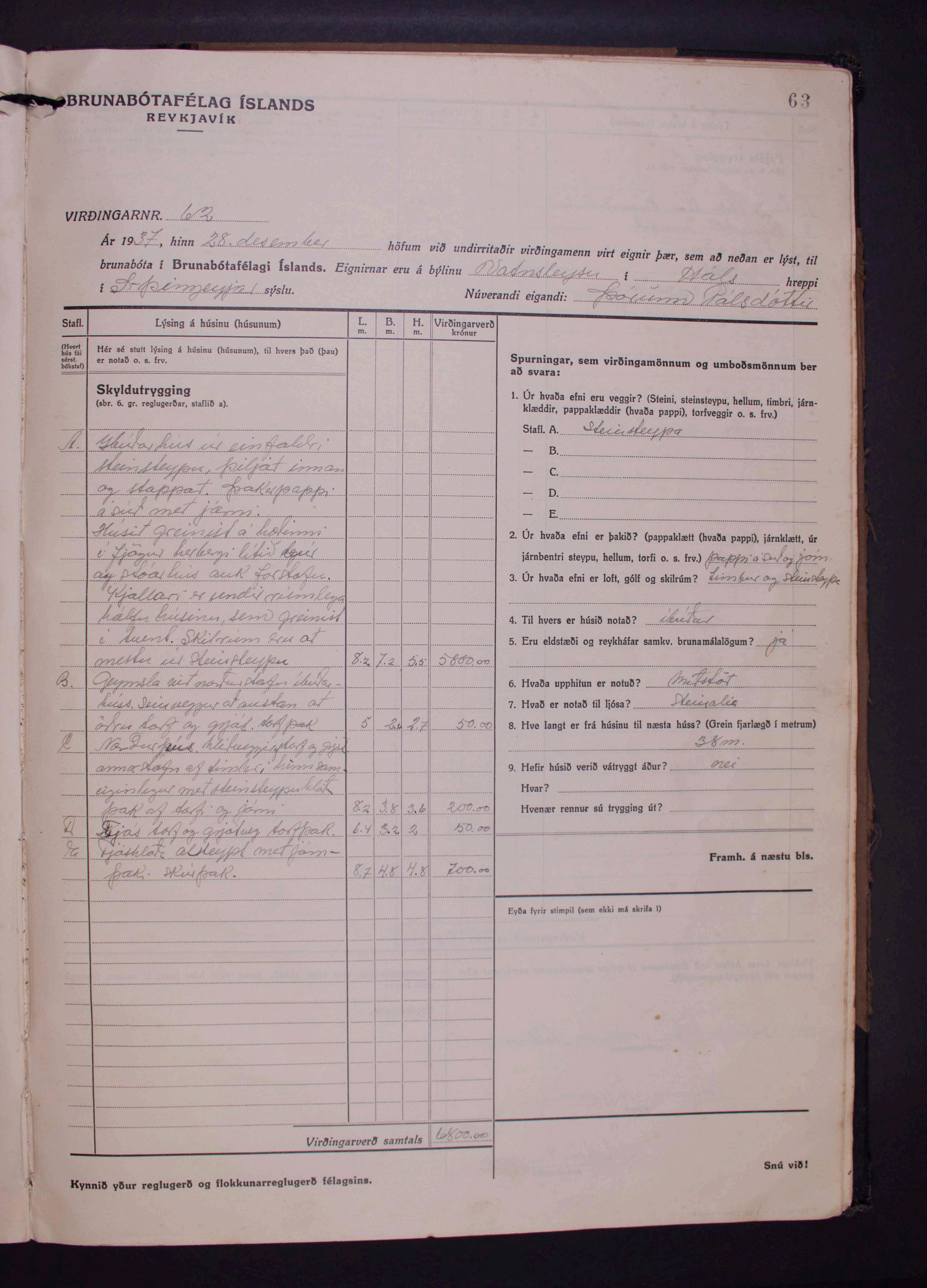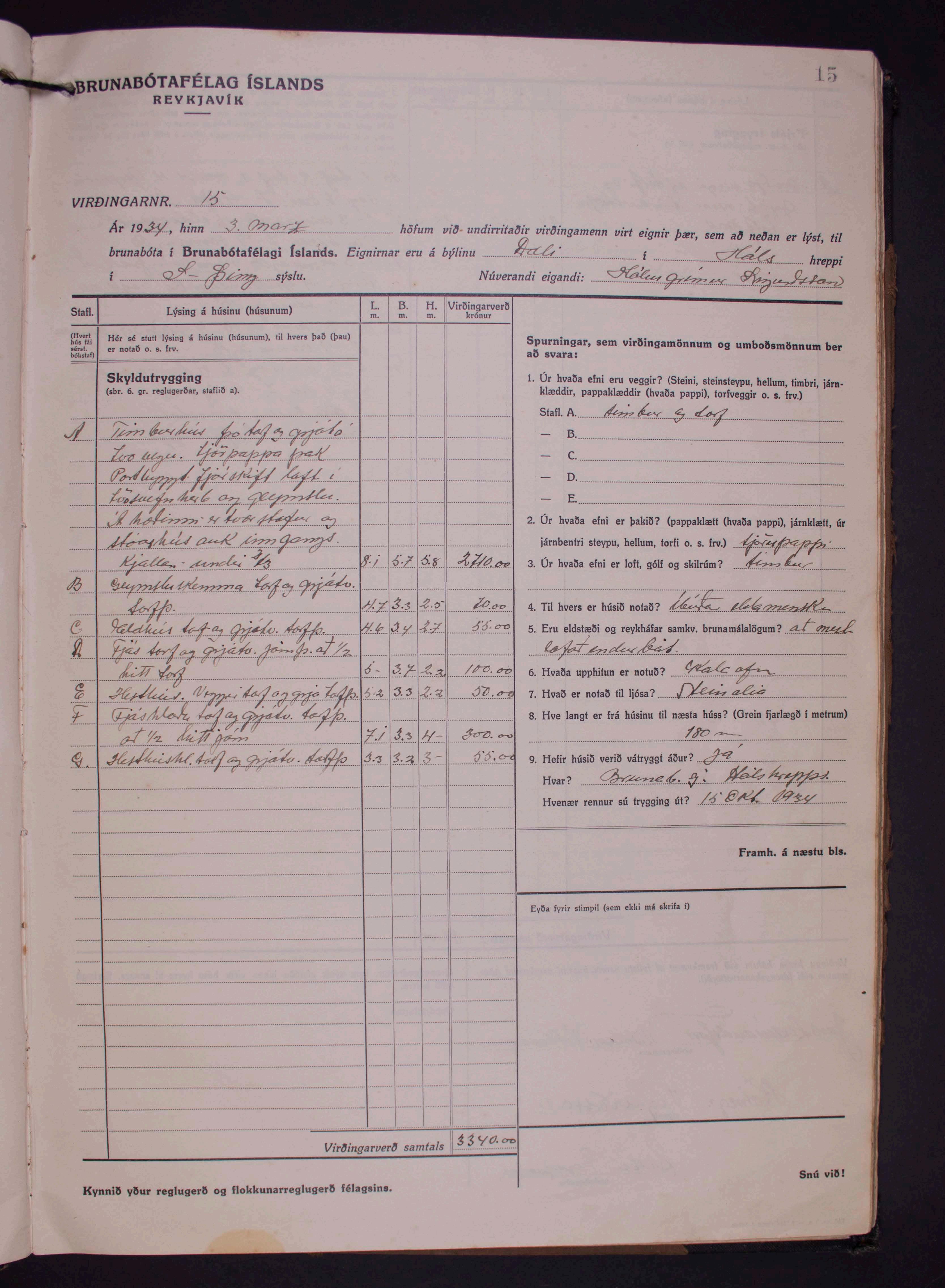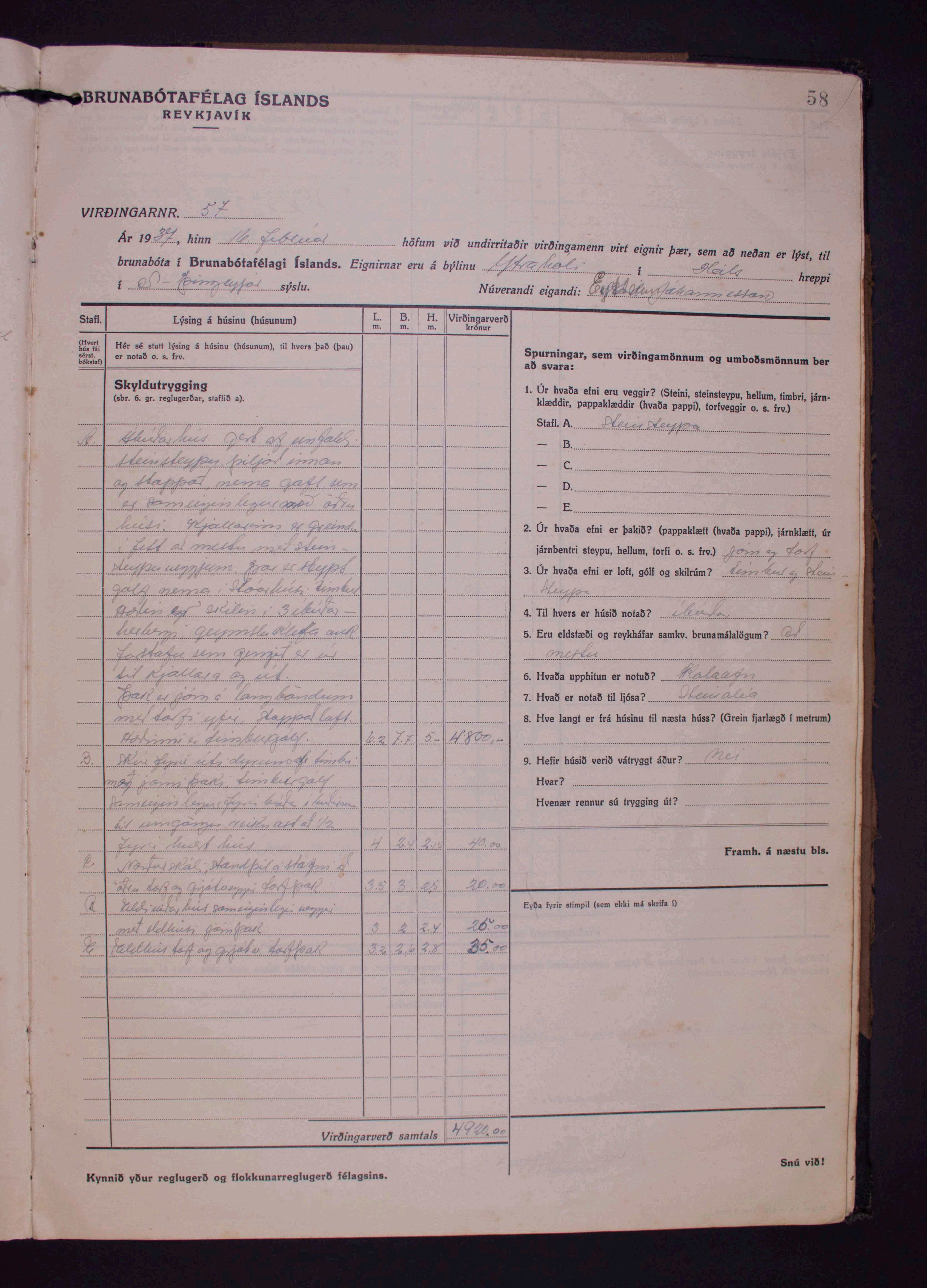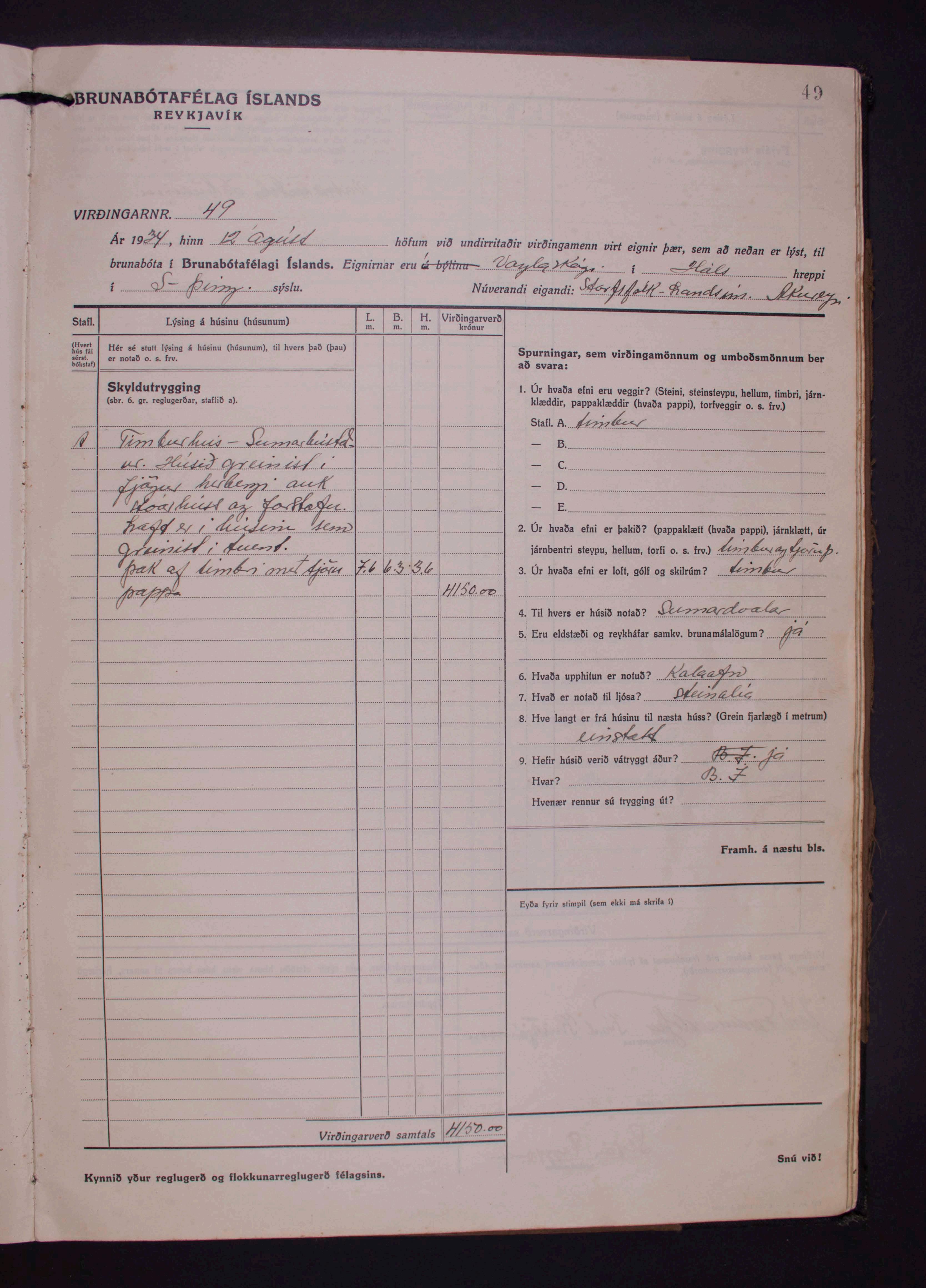 HRP-619-8 Hálshreppur. Virðingabók Brunabótafélags Íslands fyrir Hálshreppsumboð 1933-1940.