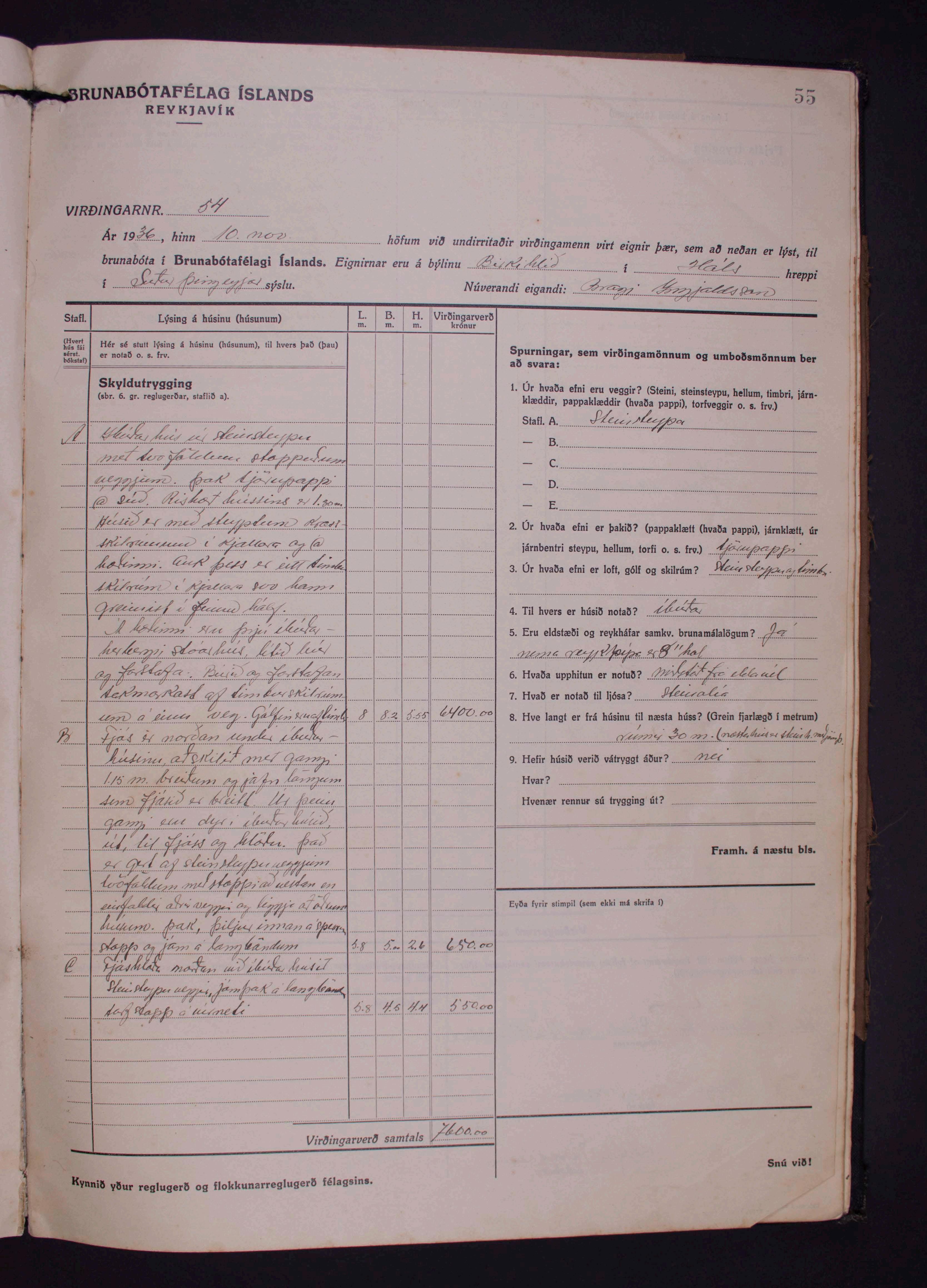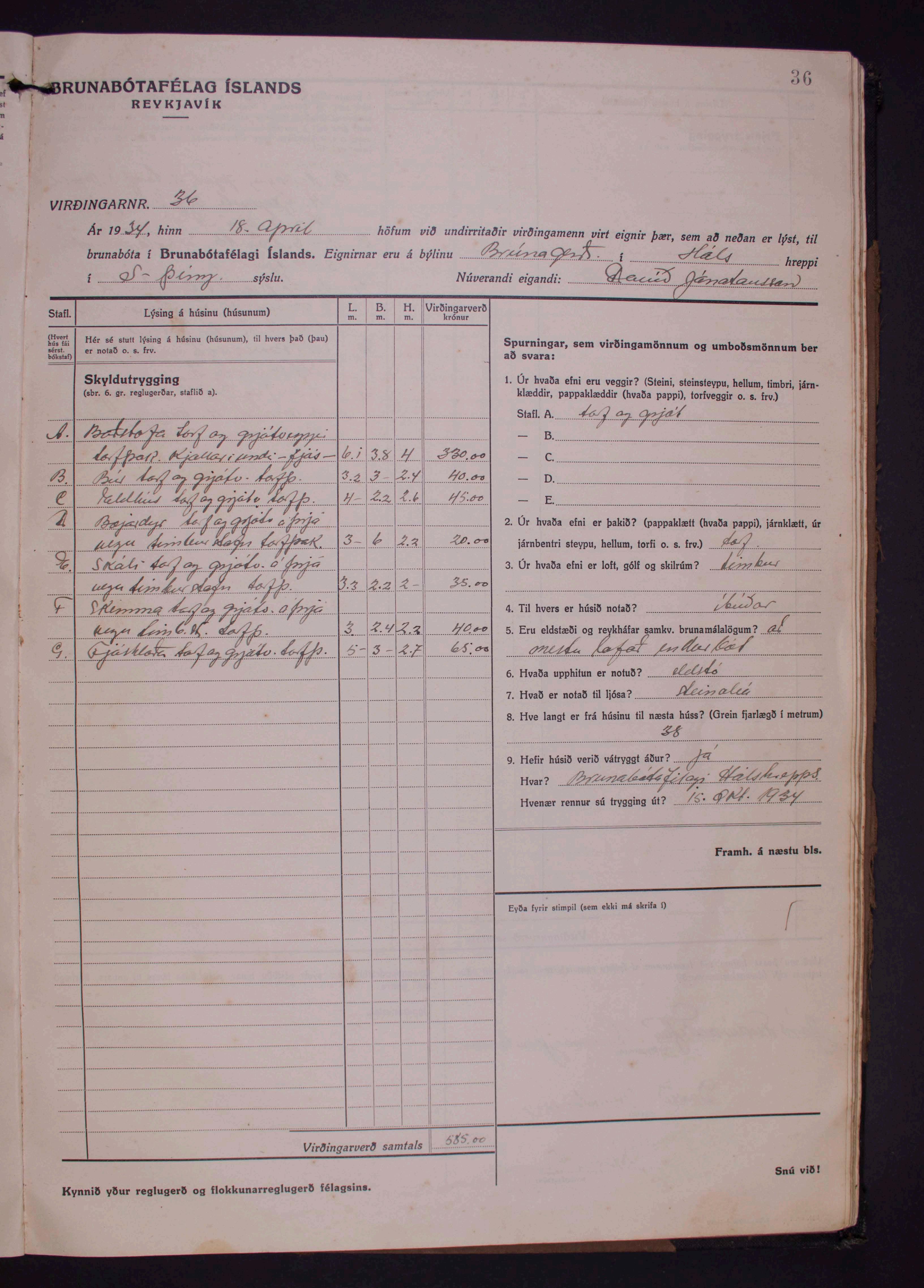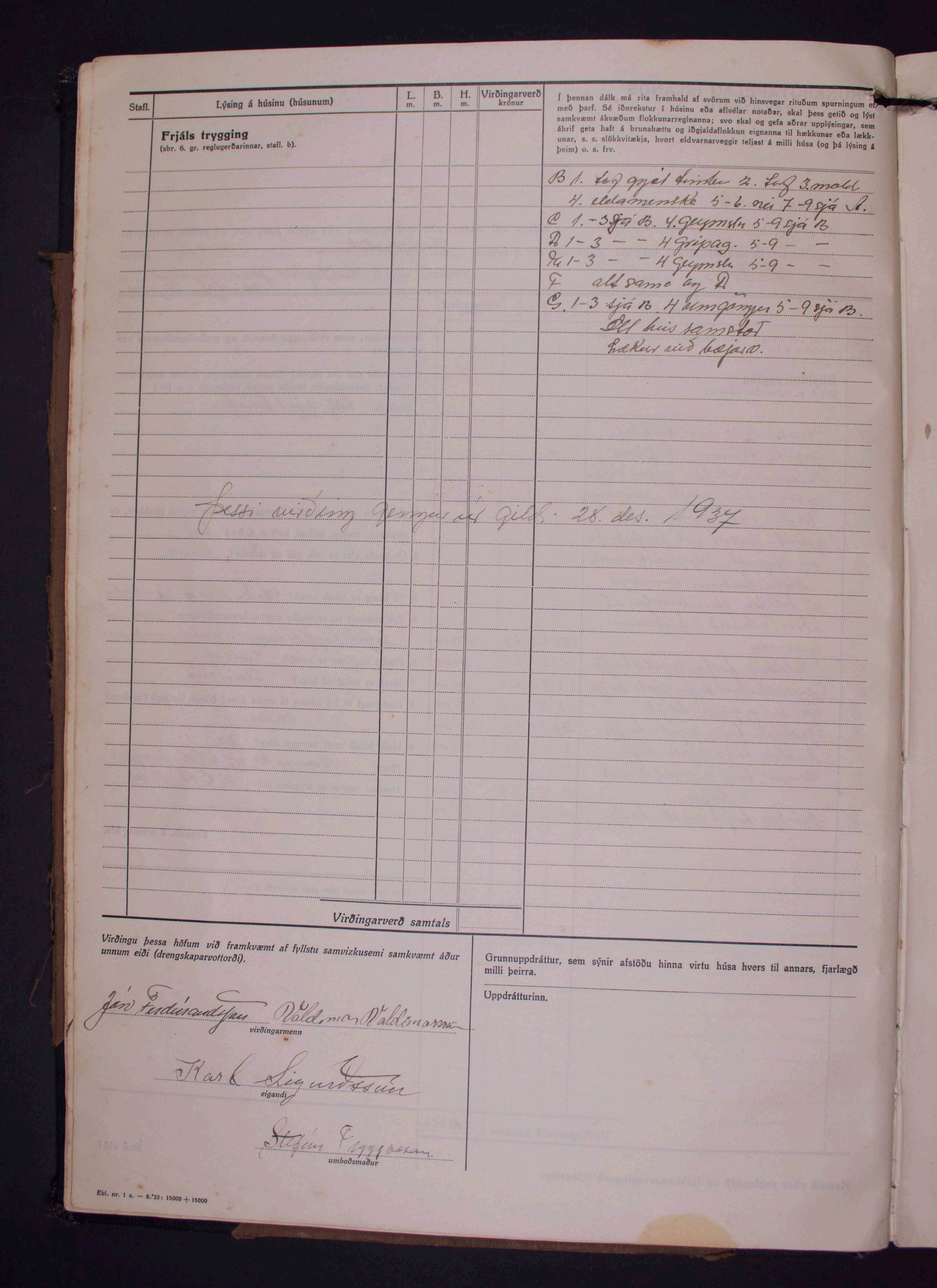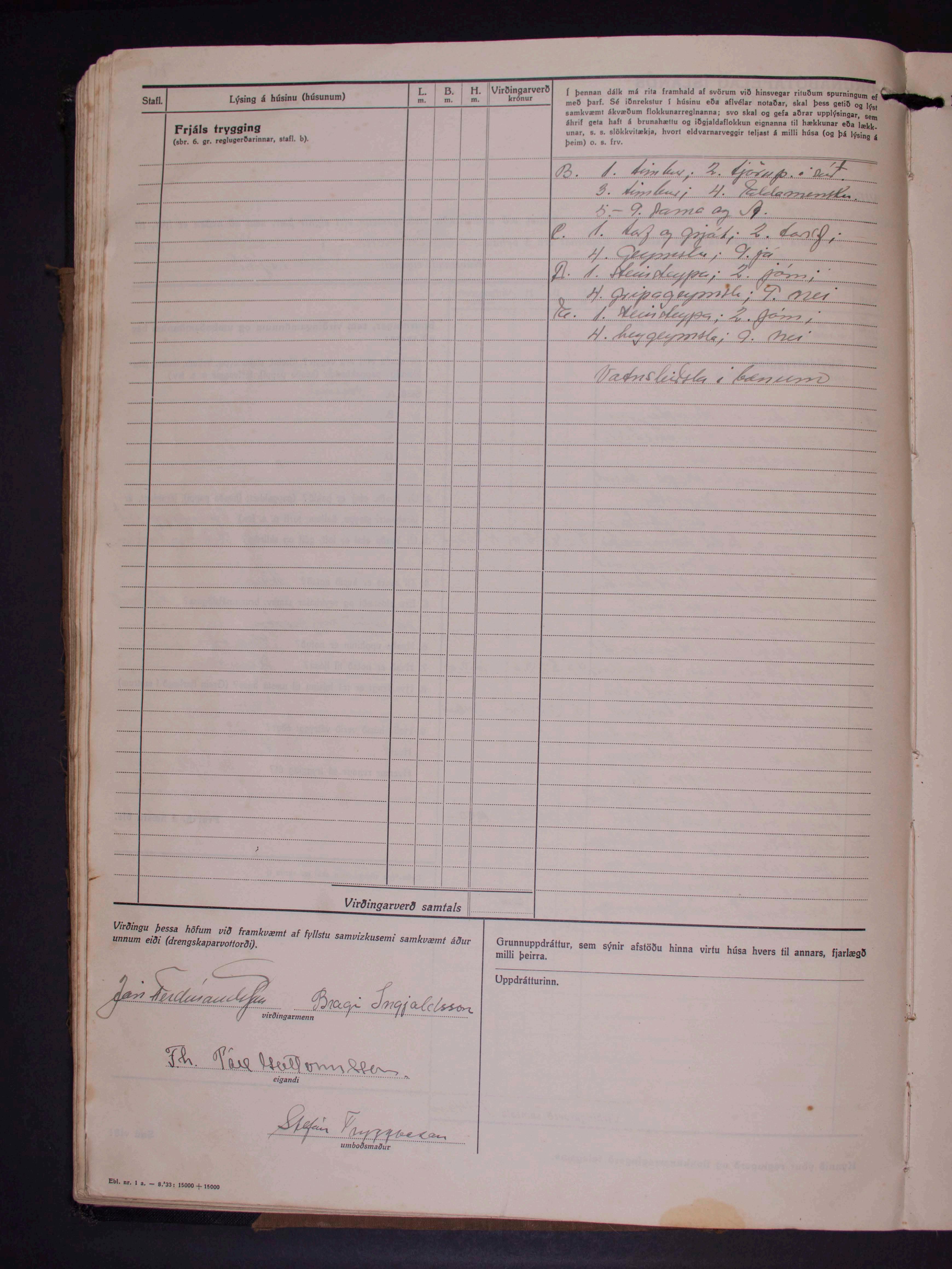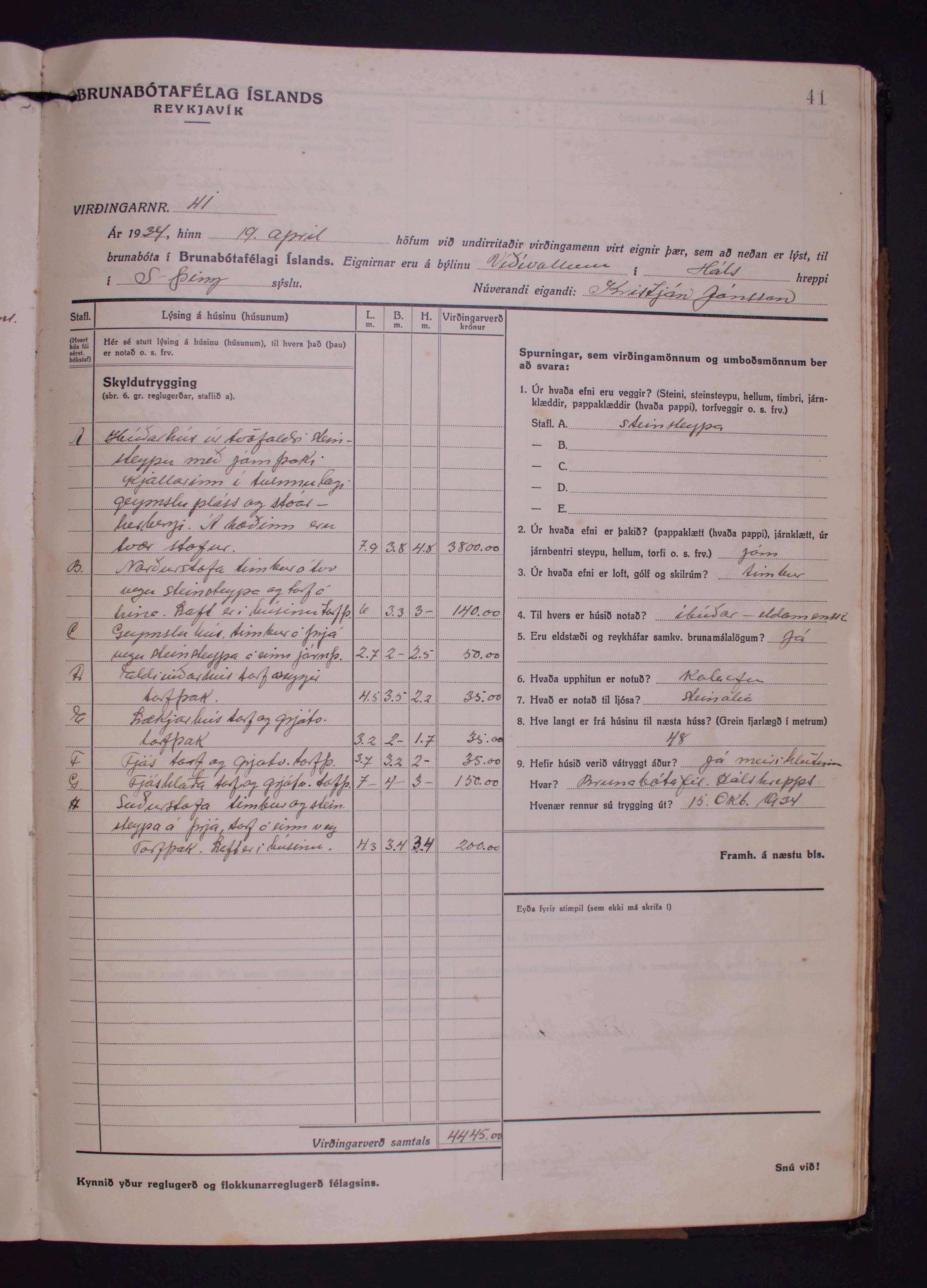 HRP-619-8 Hálshreppur. Virðingabók Brunabótafélags Íslands fyrir Hálshreppsumboð 1933-1940.