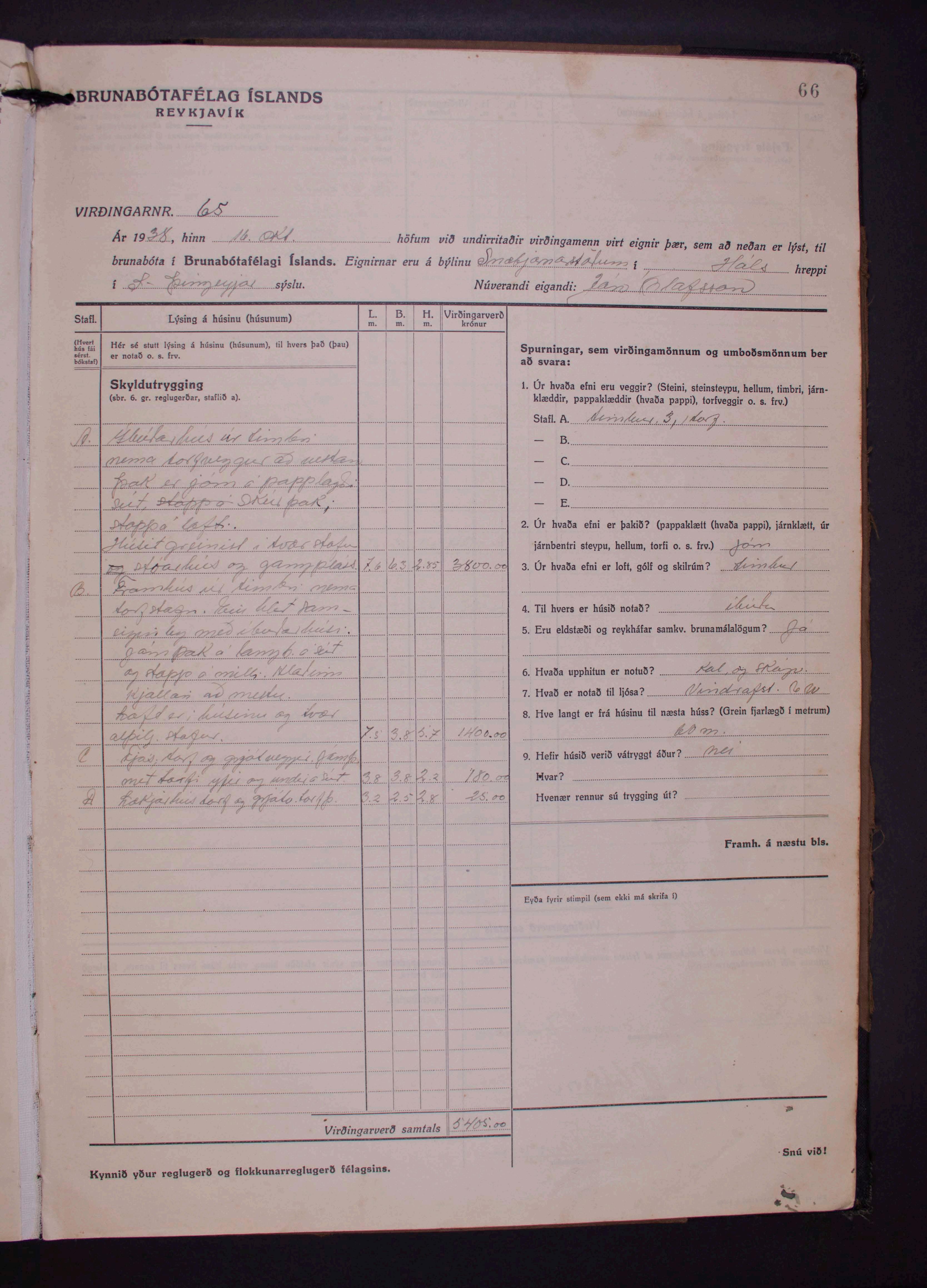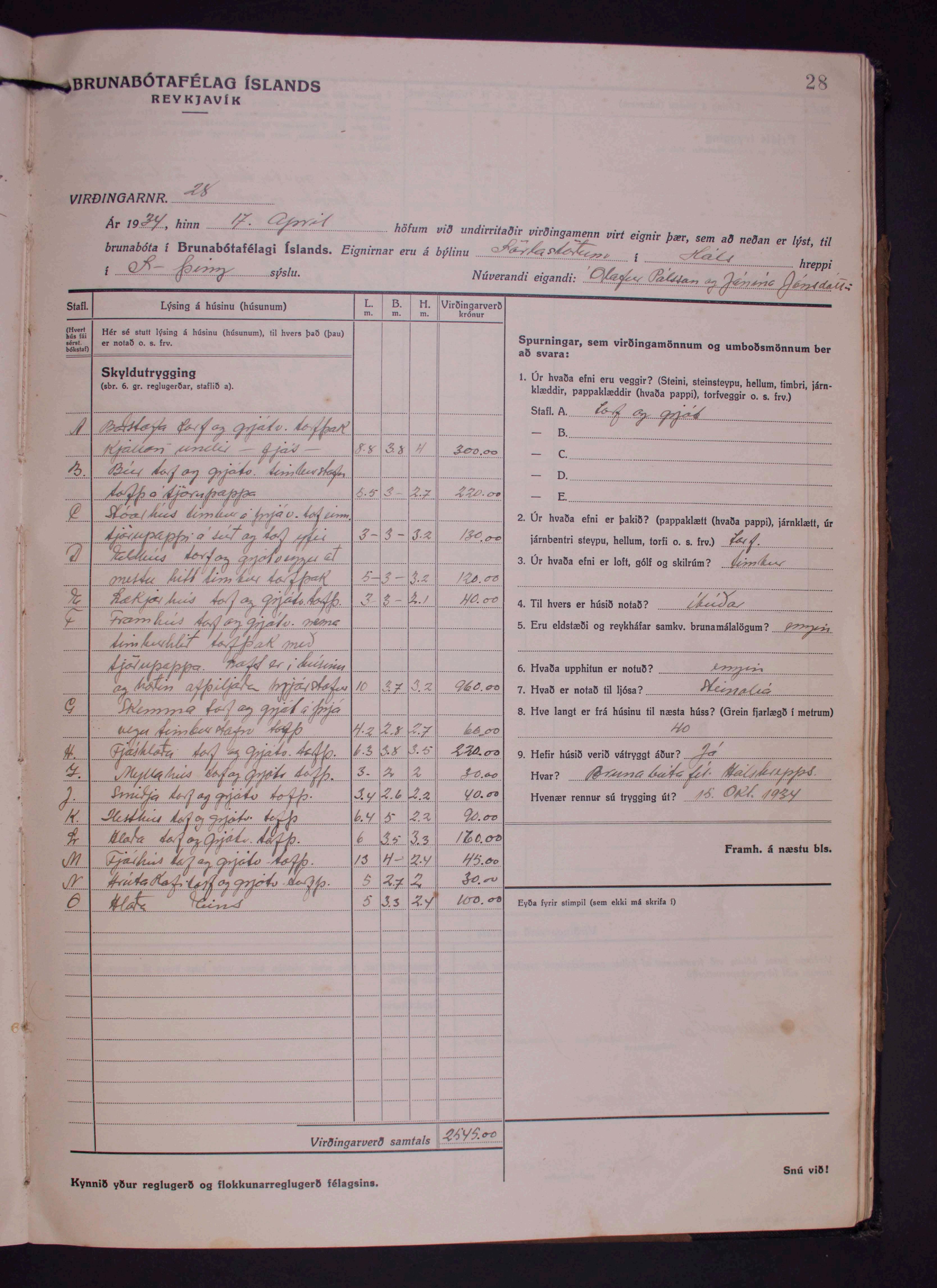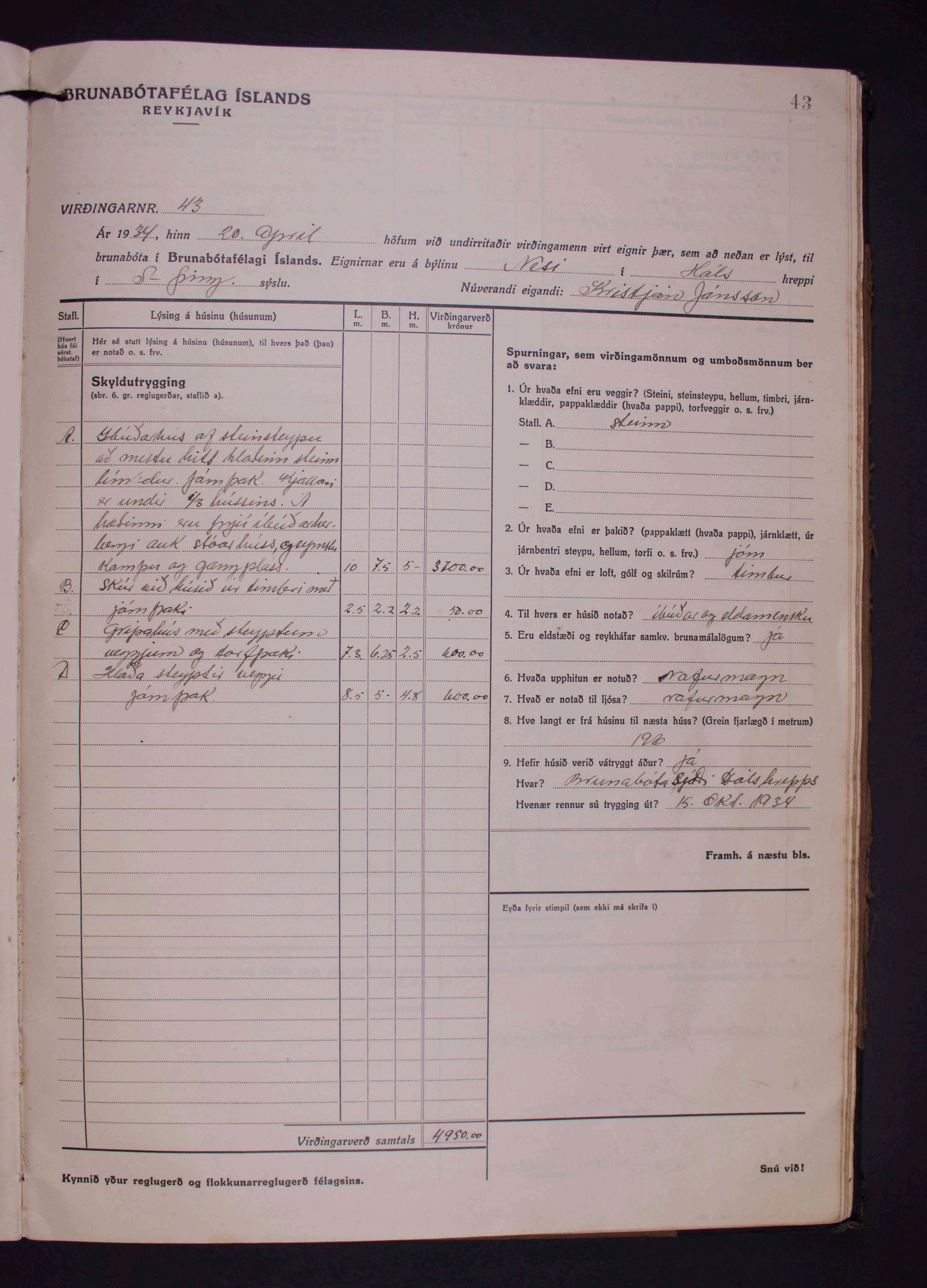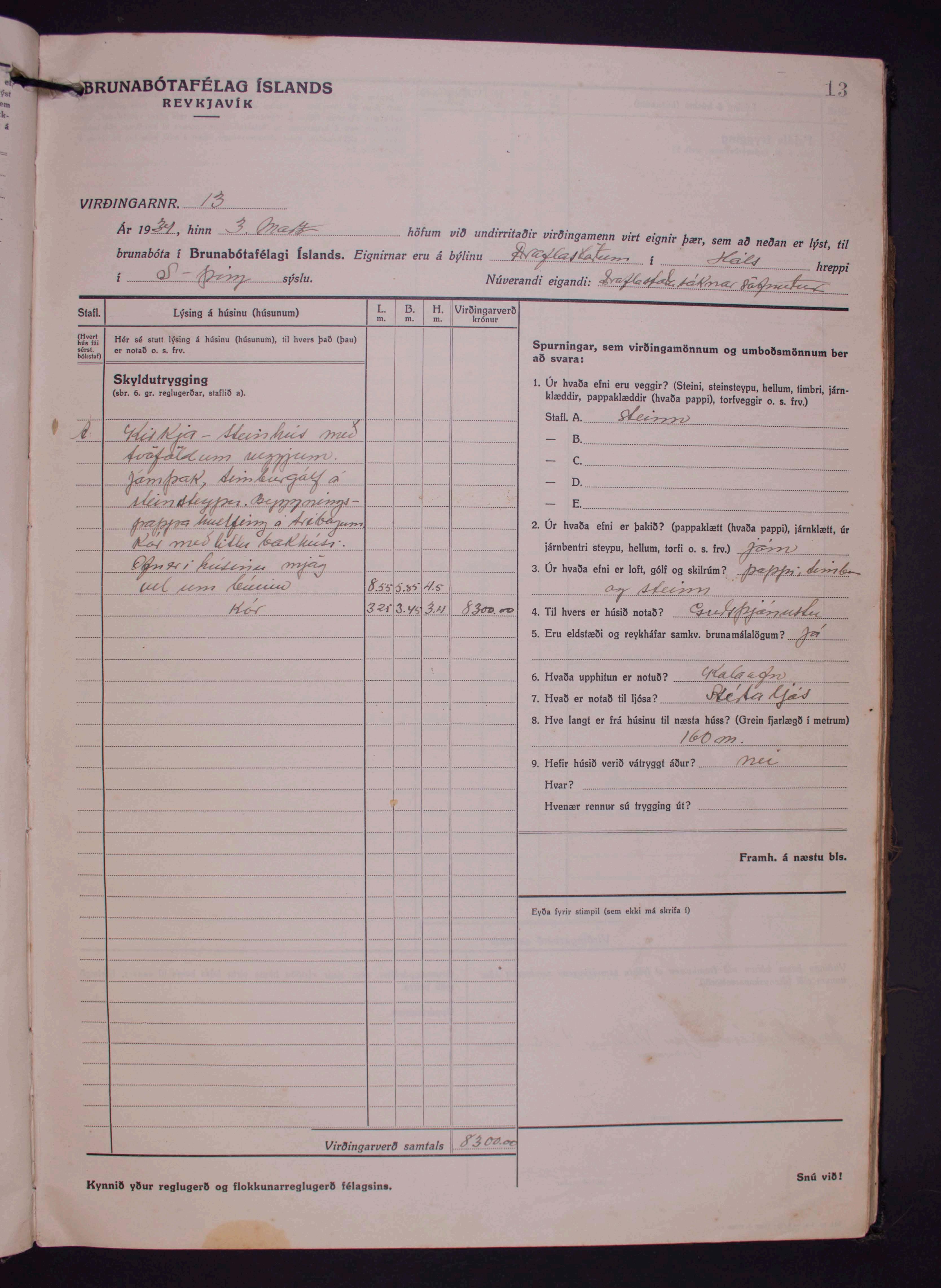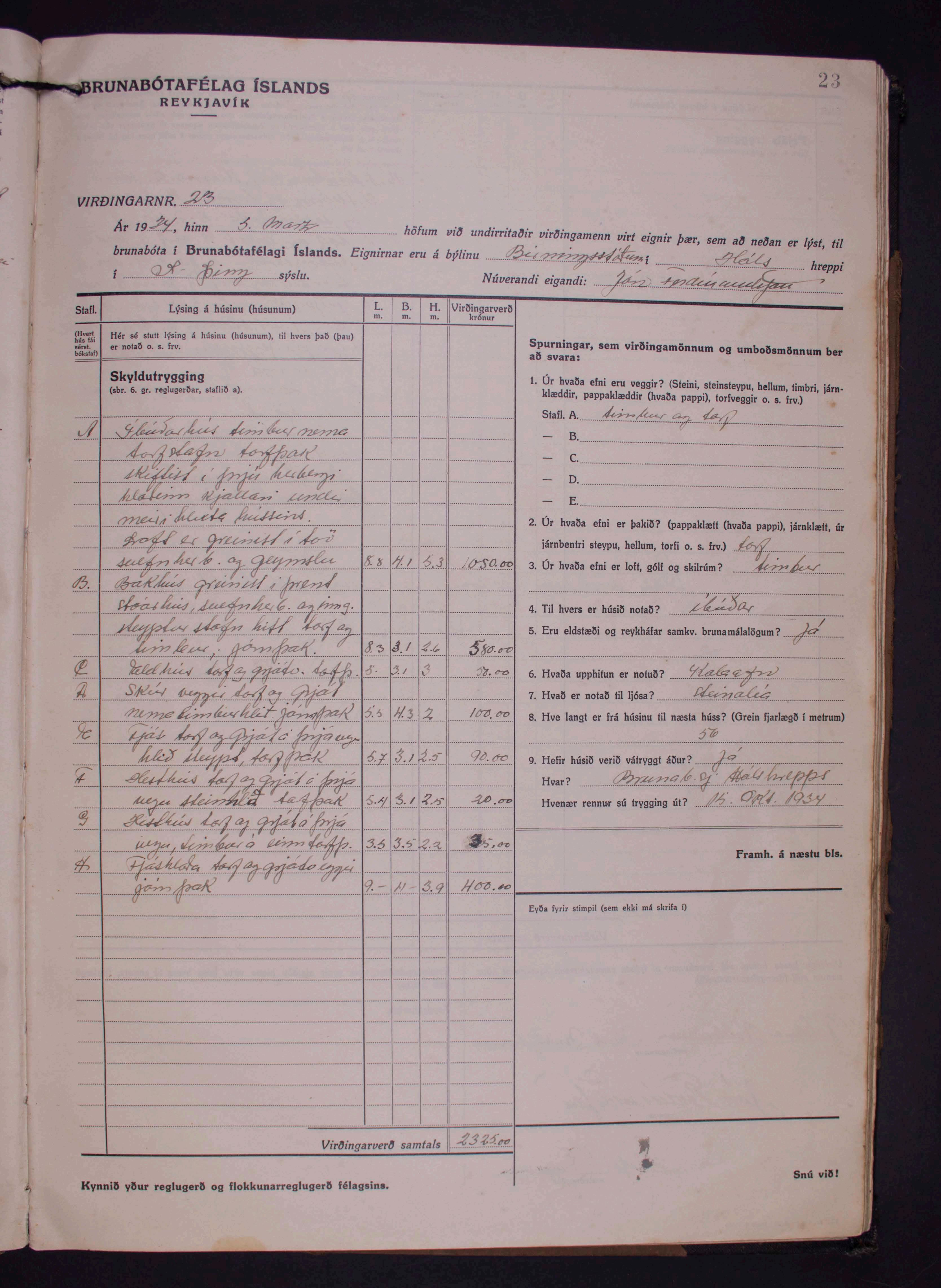 HRP-619-8 Hálshreppur. Virðingabók Brunabótafélags Íslands fyrir Hálshreppsumboð 1933-1940.