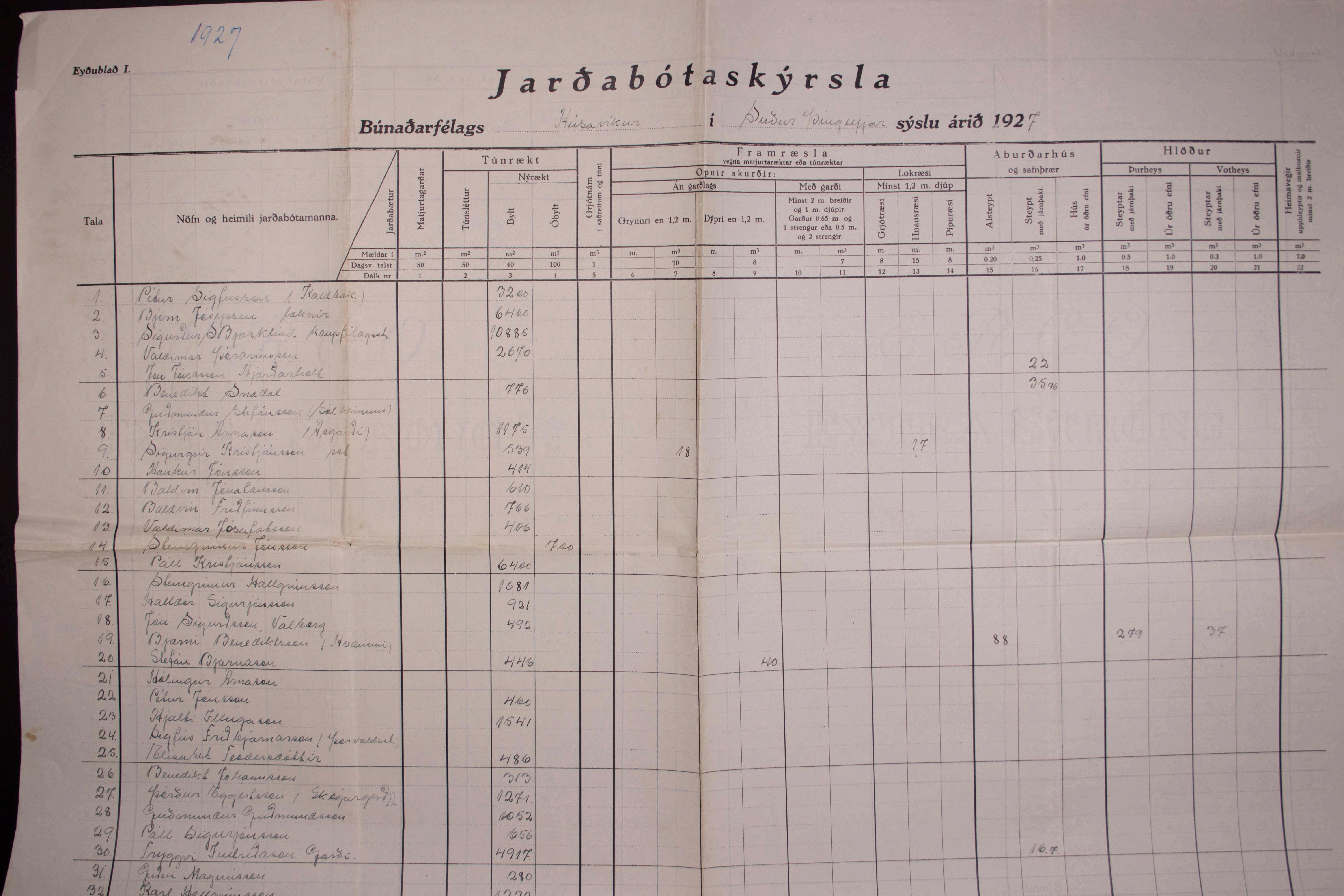 HRP-77/15 Húsavíkurhreppur. Jarðabótafélagsskýrslur 1898-1945.
