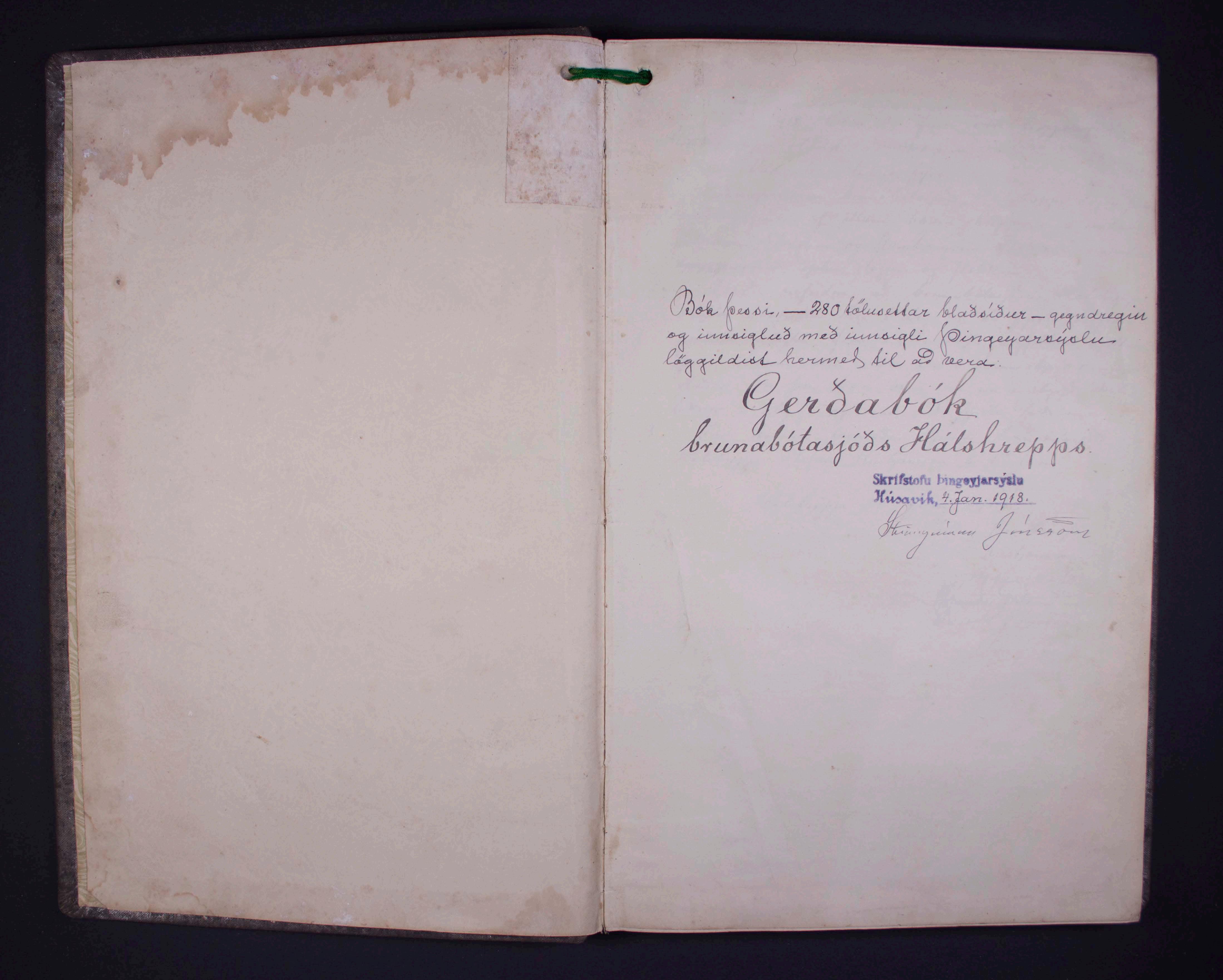 HRP-8-1 Hálshreppur. Gjörðabók brunabótasjóðs Hálshrepps 1918-1934