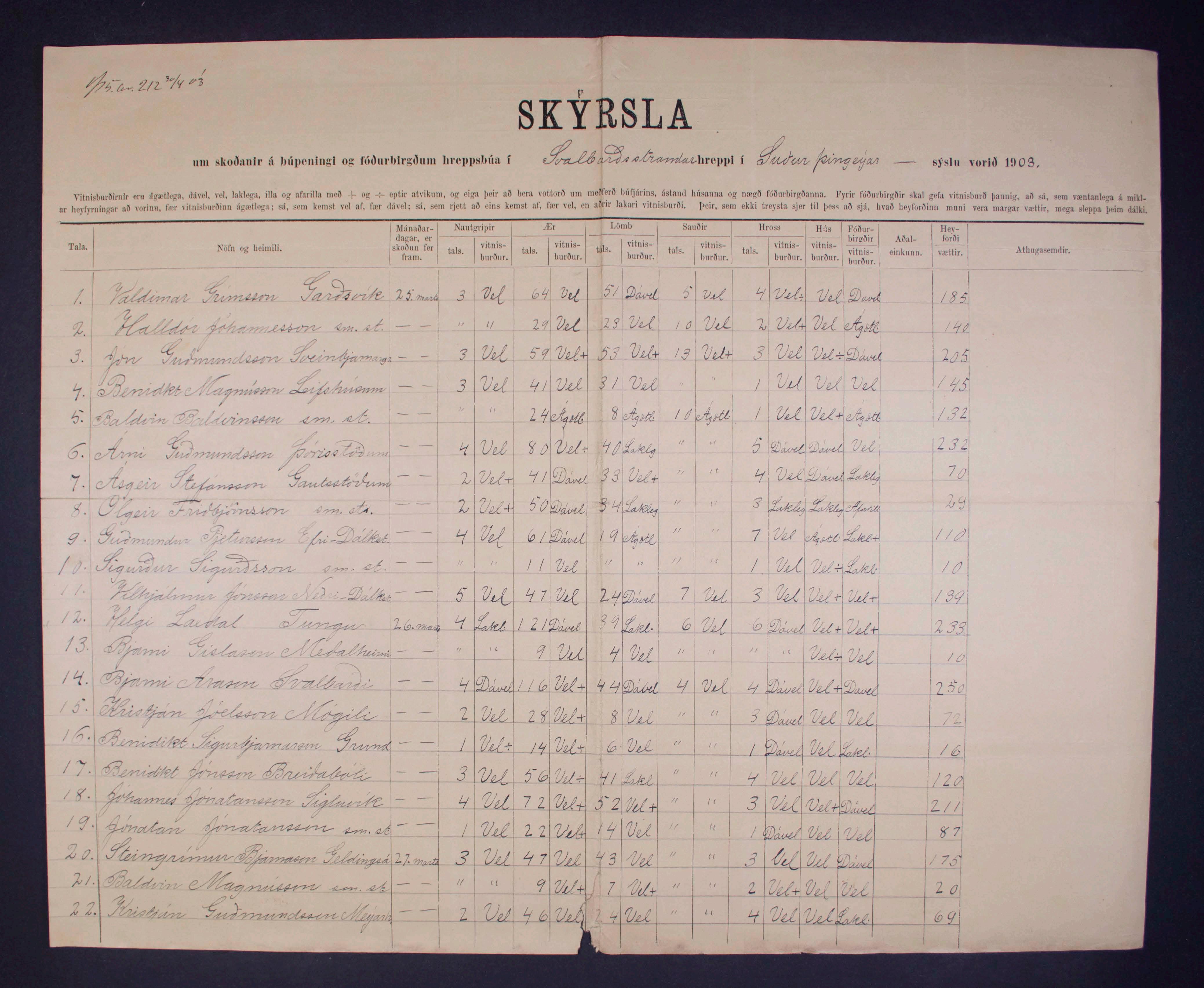 PF-3/2 Svalbarðsstrandarhreppur. Forðagæsluskýrslur 1898-1938.