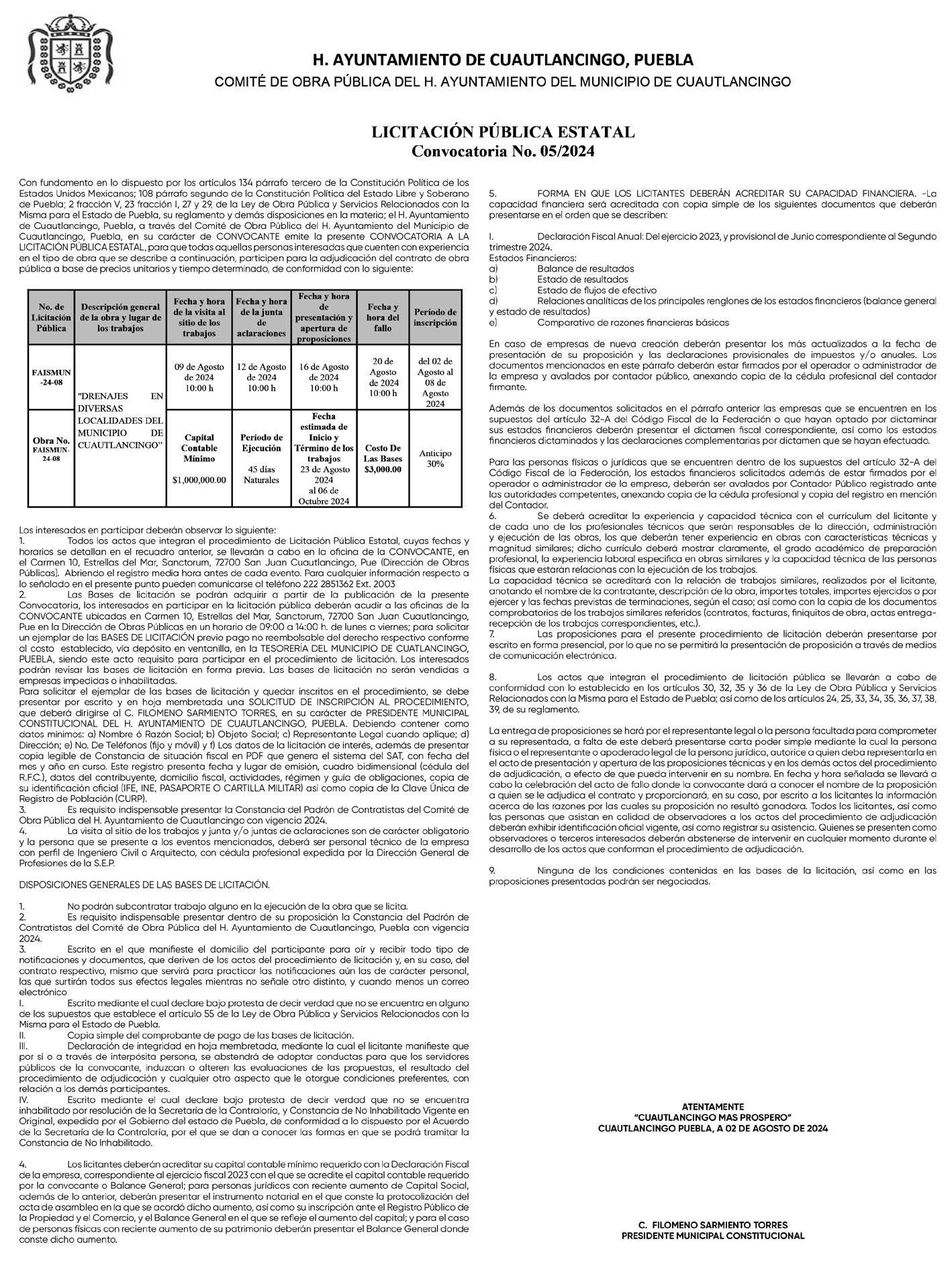 E• LA ADMINISTRACIÓN ESTATAL ENTREGARÁ TODA LA INFORMACIÓN NECESARIA PARA CONCRETAR EL PROYECTO.