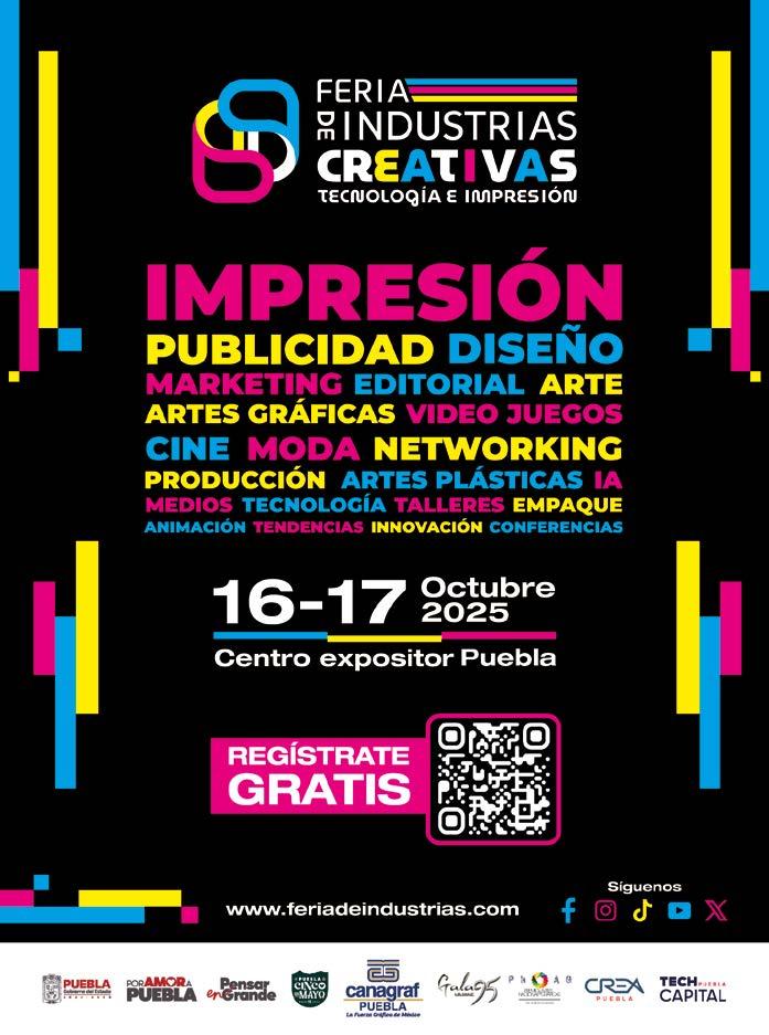 La Feria de Industrias Creativas, Tecnología e Impresión, organizada por la Cámara Nacional de la Industria de Artes Gráficas (Canagraf) Puebla, se llevará a cabo los días 16 y 17 de octubre en el Centro Expositor de Puebla. De acuerdo con sus organizadores, este evento será una plataforma clave para conocer las últimas tecnologías del sector y avanzar en su profesionalización.