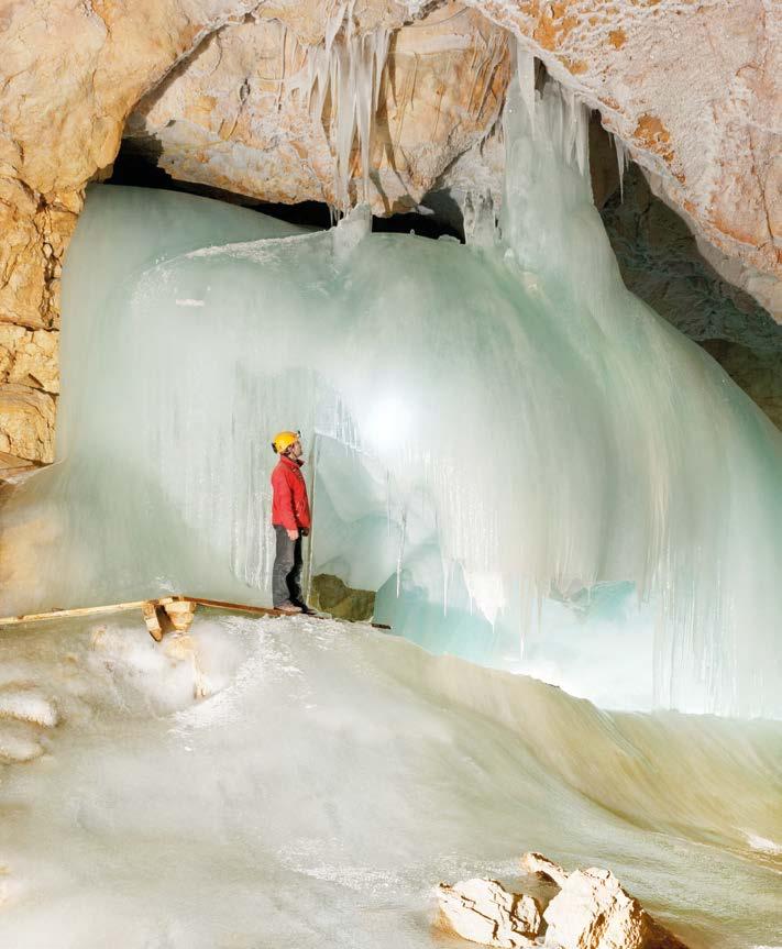 senwel de Austria, se encuentran en la Sierra de Tennengebirge cerca de Salzburgo y se extiende a lo largo de unos notables 40 kilómetros. Solo una parte de la cueva está abierta a los turistas, pero es suficiente para vivir la aventura más divertida de nuestras vidas. Cabe destacar que las cuevas de hielo son muy diferentes a las cuevas normales, tanto en temperatura, como en su estructura.