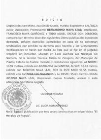 C. DILIGENCIARIA ABOG. LUCIA ROMAN PEREZ NOTA. PARA SU PUBLICACIÓN TRES VECES, PERIÓDICO “HERALDO DE PUEBLA”