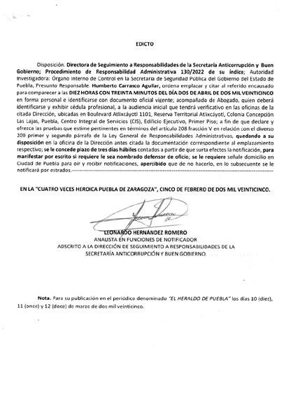 AVISO NOTARIAL DE CONFORMIDAD CON EL ARTICULO 784 DEL CÓDIGO DE PROCEDIMIENTOS CIVILES PARA EL ESTADO, EL SUSCRITO TITULAR DE LA NOTARÍA PÚBLICA NÚMERO SIETE DEL DISTRITO JUDICIAL DE TEHUACÁN, PUEBLA, DOY A CONOCER LA DENUNCIA DE LA SUCESIÓN TESTAMENTARIA DEL SEÑOR HUGO SOSA OLIVERA, QUIEN TAMBIÉN FUE CONOCIDO CON EL NOMBRE DE HUGO SOSA, QUE FORMULA LA SEÑORA MARTHA RUTH SOSA CARRILLO, EN SU CARÁCTER DE ALBACEA TESTAMENTARIO, EN LA QUE SE RECONOCE: A).- LA VALIDEZ DEL TESTAMENTO. B).- LA ACEPTACIÓN DE LA HERENCIA QUE LEGALMENTE LE CORRESPONDE A LA SEÑORA MARTHA RUTH SOSA CARRILLO. C).- LOS DERECHOS HEREDITARIOS DE ESTA SUCESIÓN. D).- QUE LA SEÑORA MARTHA RUTH SOSA CARRILLO, ACEPTÓ EL CARGO DE ALBACEA. E).- QUE EN SU OPORTUNIDAD LA ALBACEA, PROCEDERÁ A FORMULAR EL INVENTARIO DE LOS BIENES DE LA HERENCIA. ATENTAMENTE SUFRAGIO EFECTIVO NO REELECCIÓN. TEHUACÁN, PUEBLA, A 05 DE MARZO DE 2025. TITULAR DE LA NOTARIA PÚBLICA NUMERO SIETE. LIC. JOSÉ LUIS SALGADO VÁZQUEZ. Para su publicación por dos veces en un término de diez días en el Periódico “El Heraldo de Puebla”.