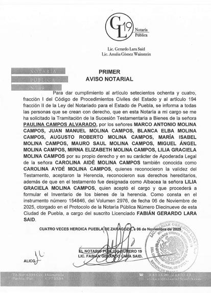 El Heraldo de Puebla es una publicación de Ediciones Gráficas de Puebla S. de R.L. De C.V. Certificado de reserva de derechos al uso exclusivo del título (indautor): 04-2017102412511000-101. Certificado de licitud de título y contenido: 17288. Editor Responsable: Erick Alain Becerra Rodríguez. Distribución: Sindicato General de Voceadores del Estado de Puebla. Se imprime en los talleres de Ediciones Gráficas de Puebla, ubicados en 34 poniente número 3530,
