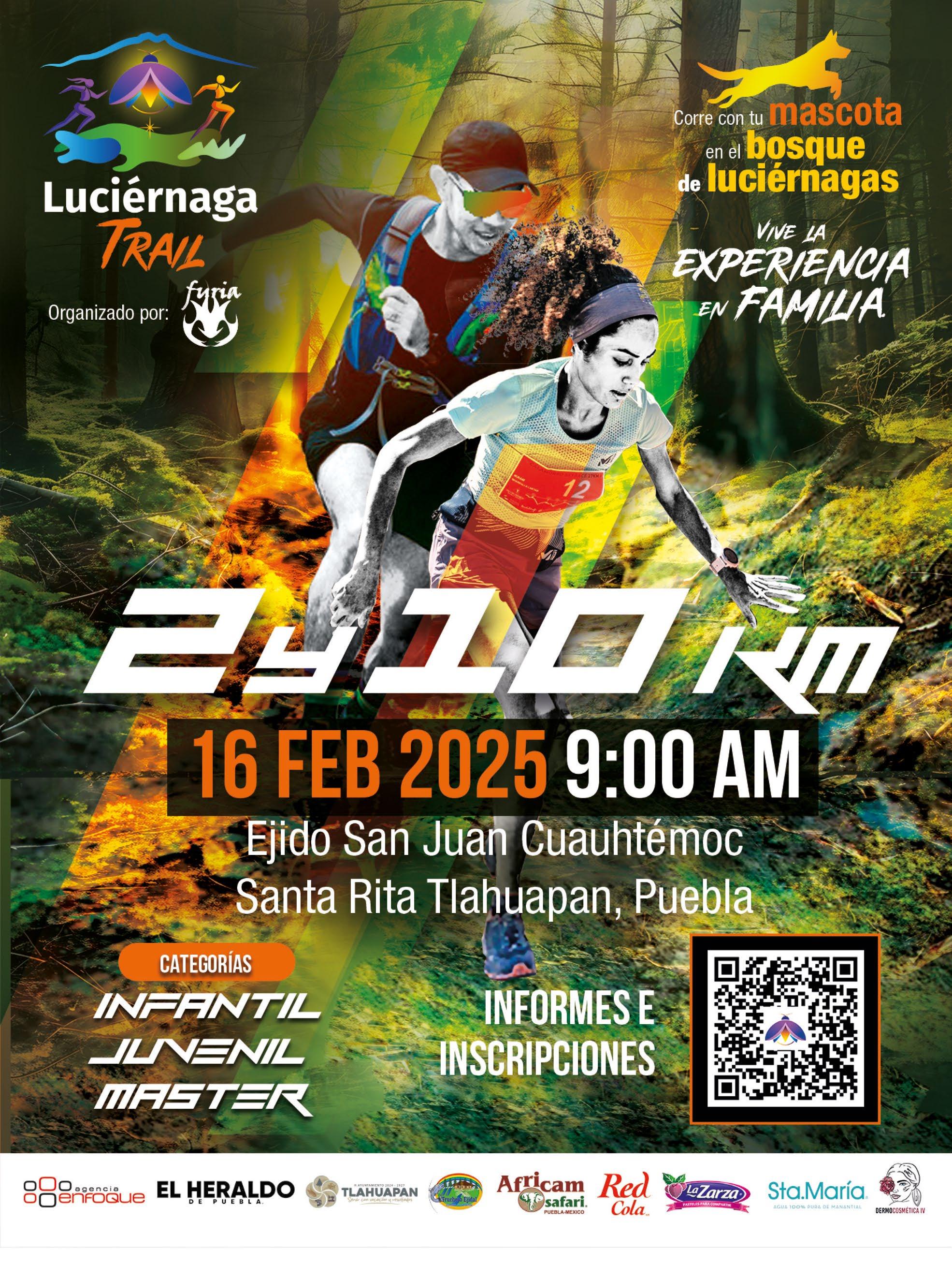 Oportunidad única de conectar con la naturaleza a través del deporte es la que se vivirá el próximo 16 de febrero a partir del 9:00 horas con la primera edición del Luciérnaga Trail 2025, el cual se llevará a cabo en el ejido San Juan Cuauhtémoc, perteneciente al municipio de Santa Rita Tlahuapan con las distancias de 2 y 10 km.