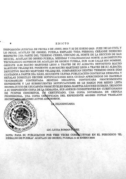 Juicio de Rectificación de acta de nacimiento, promovido por PEDRO ANDRES PEREZ VALDES, en contra del Juez del Registro del Estado Civil de las Personas de San Francisco Ocotlán, Coronango, Puebla, córrase traslado a todas aquellas personas que tengan interés en contradecir la demanda mediante TRES EDICTOS, para que dentro del término improrrogable de TRES DIAS, contados a partir de la última publicación, contesten la demanda, apercibidos de no hacerlo dentro del término concedido, se les tendrá por contestada en sentido negativo, y se continuara con el procedimiento y sus notificaciones se harán por lista, dejando copia de traslado, anexos y auto admisorio a su disposición en secretaria.