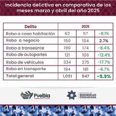 SAN PEDRO CHOLULA REFUERZA ESTRATEGIAS DE SEGURIDAD REDACCIÓN. • En seguimiento a la política de seguridad impulsada por el Gobierno Municipal de San Pedro Cholula, que encabeza la presidenta Tonantzin Fernández, durante el mes de mayo se registró una disminución del 6.9% en la incidencia delictiva.
