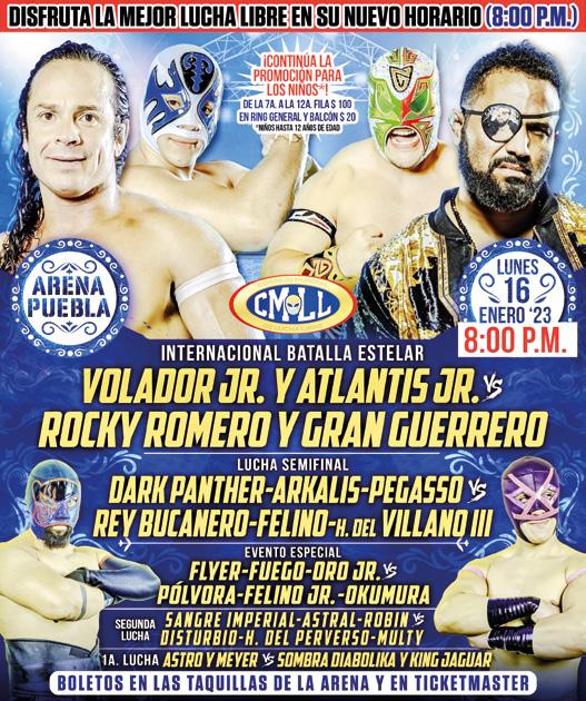 El combate principal de la tradicional función de lunes por la noche en la Arena Puebla será internacional con la presentación del cubano Rocky Romero, quien hará pareja con el Gran Guerrero para enfrentar a Vola-
