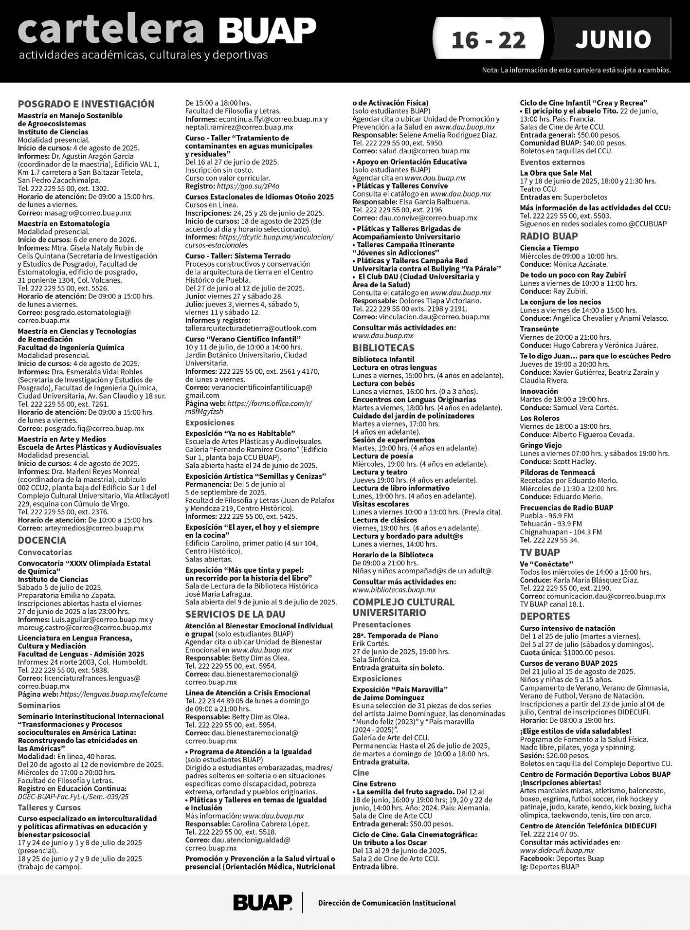 • LA BUAP INFORMÓ QUE 103