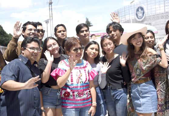 PAOLA ANGÓN, presidenta municipal, lideró la parada cívica en el corazón de San Pedro Cholula