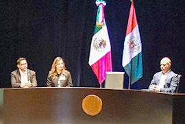 Acompañado por la presidenta del Tribunal Superior de Justicia, María Belinda Aguilar Díaz, y la diputada Laura Artemisa García Chávez.