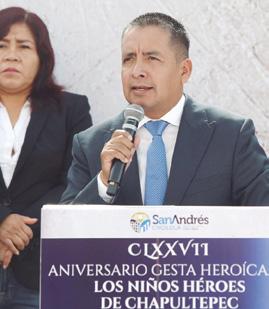 MARTÍN GUTIÉRREZ • El presidente municipal de San Andrés Cholula, Mundo Tlatehui, encabezó la ceremonia cívica en conmemoración de la gesta heroica de los Niños Héroes de Chapultepec.