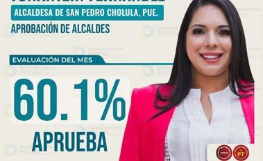 • La presidenta municipal de San Pedro Cholula, Tonantzin Fernández, se posicionó en el primer lugar del ranking de aprobación entre alcaldes del estado de Puebla, de acuerdo con la más reciente medición de Demoscopia Digital correspondiente al mes de febrero.