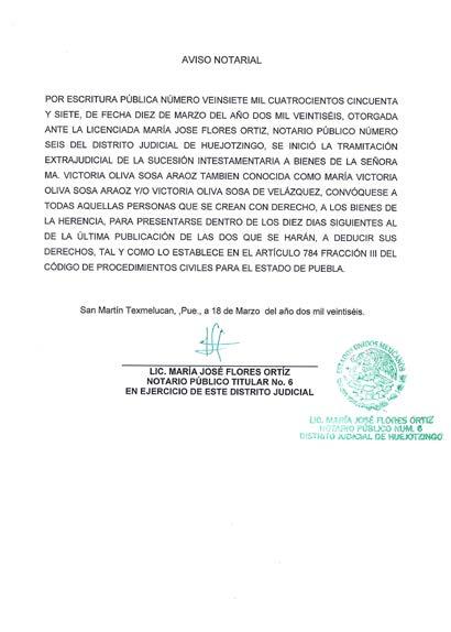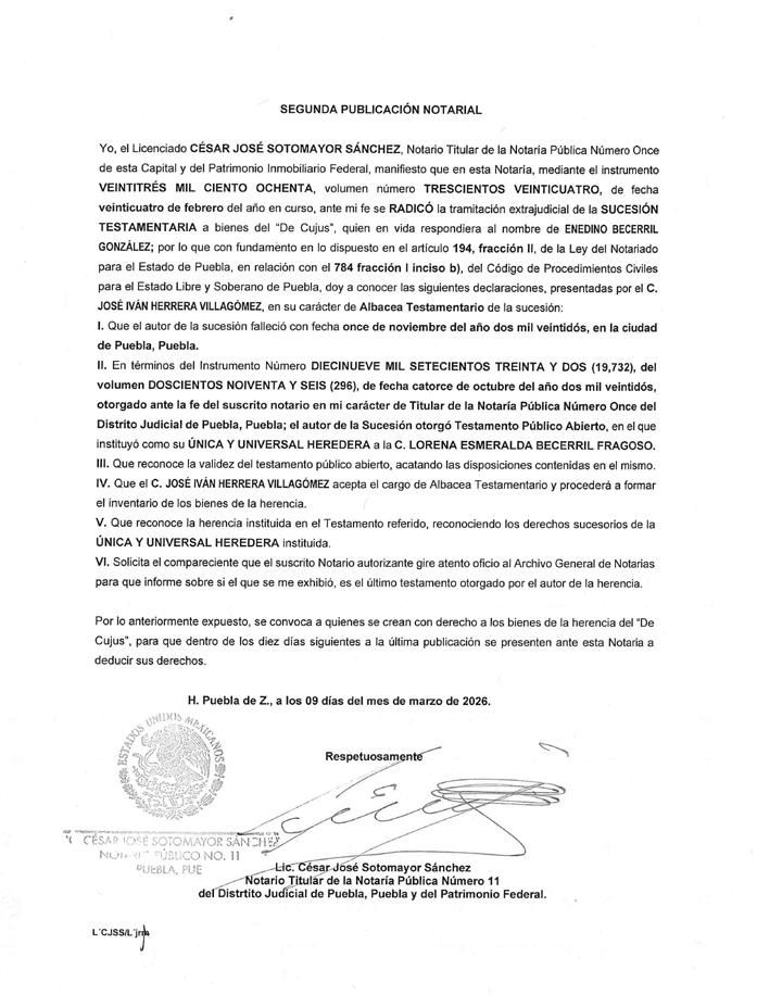 Atentamente Puebla de Zaragoza a 19 de marzo de 2026.
