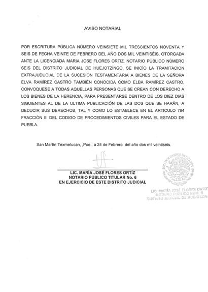 DISPOSICIÓN DEL JUEZ MUNICIPAL DE PETLALCINGO, PUEBLA; expediente 114/2026, Juicio Especial de Rectificación de Acta de Nacimiento; promueve CARMEN RAMÍREZ RAMÍREZ, a efecto de que se asiente correctamente mí nombre: CARMEN RAMÍREZ RAMÍREZ, fecha de nacimiento DIECIOCHO DE JULIO DE MIL NOVECIENTOS CUARENTA Y CUATRO, lugar de nacimiento PETLALCINGO, PUEBLA; como nombre correcto de mi madre MARÍA RAMÍREZ ROJAS, y SE ORDENE LA CANCELACION DE LA ANOTACIÓN MARGINAL EN EL ACTA DE NACIMIENTO. Auto de fecha veinte de febrero de dos mil veintiséis, emplácesele mediante EDICTO a toda persona que pudiera tener interés en contradecir demanda para que comparezca en termino de tres días para hacer valer su derecho, de no hacerlo se tendrá por perdido su derecho, quedando en Secretaria del Juzgado copias de la demanda, anexos y auto de admisión para que se impongan de la misma. Petlalcingo, Puebla; cinco de marzo de dos mil veintiséis.