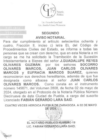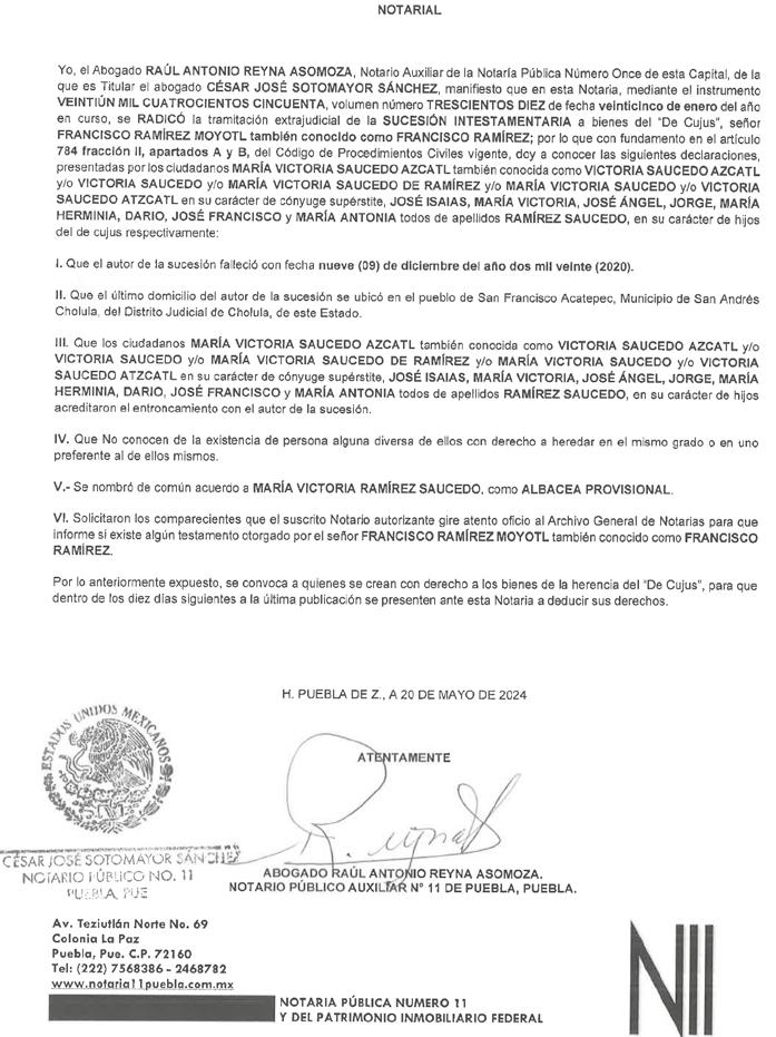 NOTA: Para su publicación por tres veces consecutivas en el Periódico “El