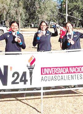 En tiro con arco, Andrea Ximena Pérez Martínez, de la Licenciatura en Ciencias Políticas, Melissa Prieto Barrera, de la Licenciatura en Biotecnología, y Renata Campos Fernández, de Ingeniería Geofísica, obtuvieron bronce en la categoría de equipo femenil arco recurvo.