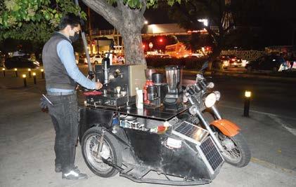 Gracias a sus estudios en ingeniería mecánica tenía el bosquejo de una estación cafetera en la ca beza y con la ayuda de un herrero, forjó cada pieza a la medida hasta adaptarla en su moto.