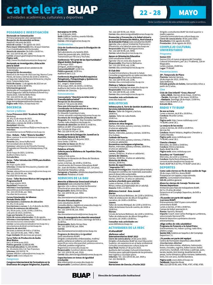 • LA BUAP TAMBIÉN INFORMÓ QUE SE CANCELAN LAS ACTIVIDADES CULTURALES Y DEPORTIVAS AL AIRE LIBRE