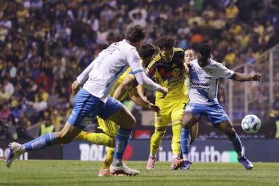 RETOMÓ EL VUELO HACIA LA VICTORIA GOLEANDO 0-4 AL CLUB PUEBLA EN EL ESTADIO CUAUHTÉMOC, RECINTO QUE SE PINTÓ DE AMARILLO Y SIRVIÓ PARA SER UNA AUTÉNTICA FIESTA AZULCREMA. OMAR CUAUTLE ROJAS FOTO: HILDA RÍOS/ENFOQUE