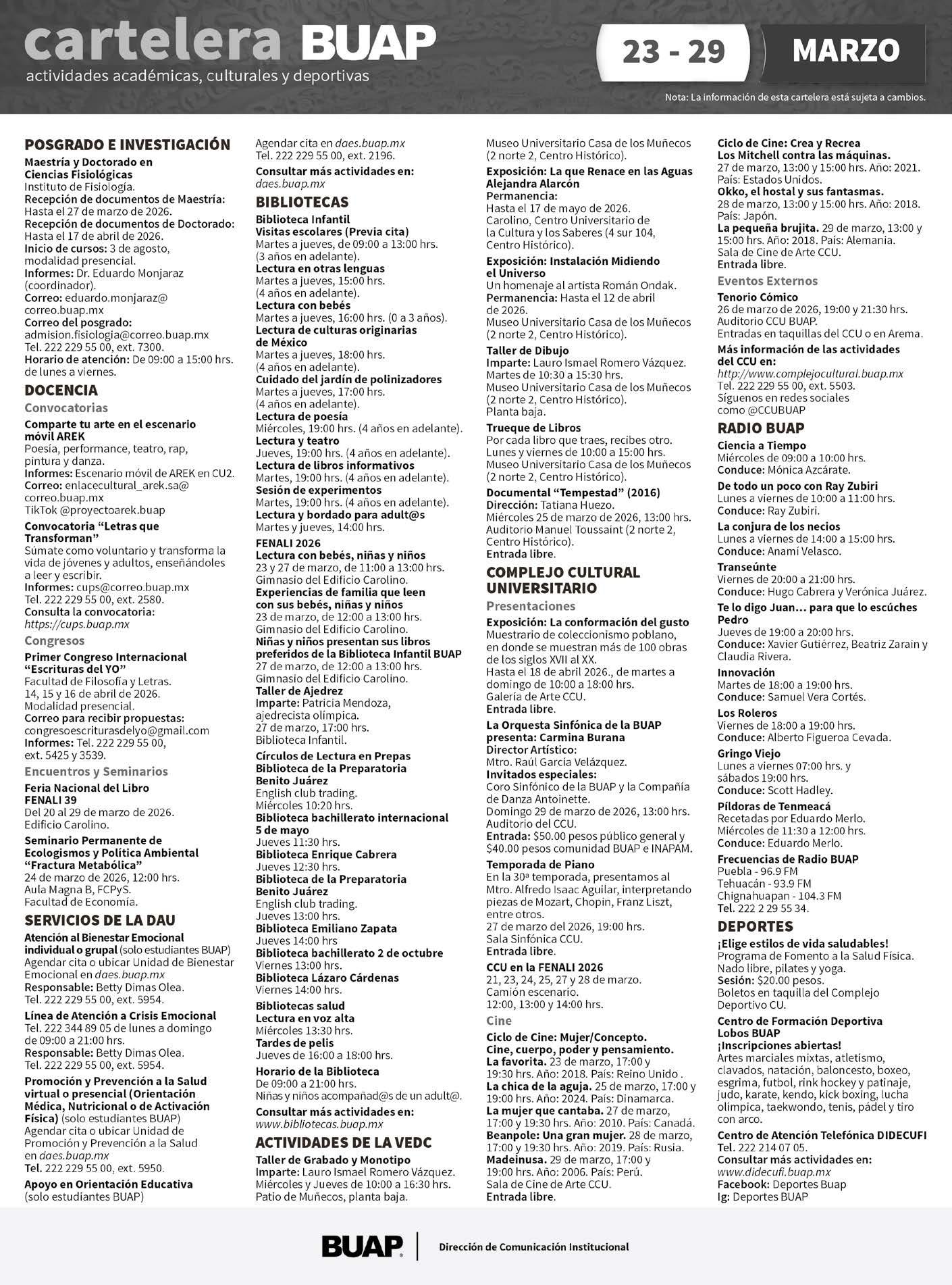 Oficinas de El Heraldo de Puebla: Calle 15 oriente no.422-1 Col. El Carmen C.P. 72530, Puebla, Pue. El contenido de cada artículo es responsabilidad de quien lo firma. Lunes 23 de marzo de 2026