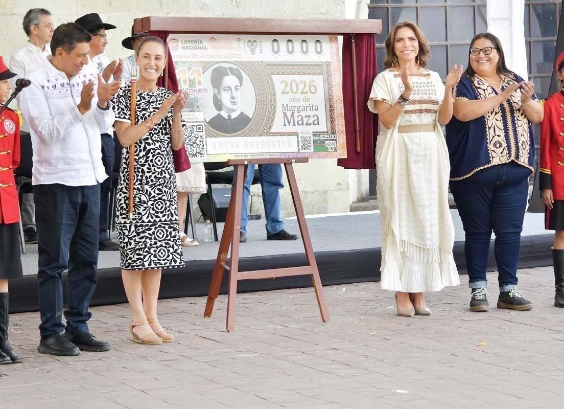 LA PRESIDENTA CLAUDIA SHEINBAUM PARDO Y OLIVIA SALOMÓN, DIRECTORA GENERAL DE LOTERÍA NACIONAL, DEVELARON EL BILLETE EN HOMENAJE A MARGARITA MAZA, FIGURA CLAVE DEL ESTADO LAICO. REDACCIÓN | FOTO: ESPECIAL | PÁG. 10