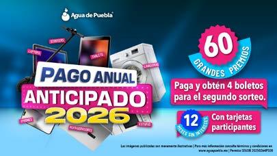 Ante la respuesta de 161 mil 500 usuarios que de octubre a la fecha realizaron su Pago Anual Anticipado 2026, Agua de Puebla para Todos informó que se amplió durante febrero el plazo para efectuar este trámite, manteniendo congelada la tarifa actual vigente para todo el año 2026. Además de asegurar la tarifa sin incrementos, quienes realicen su Pago Anual participarán automáticamente
