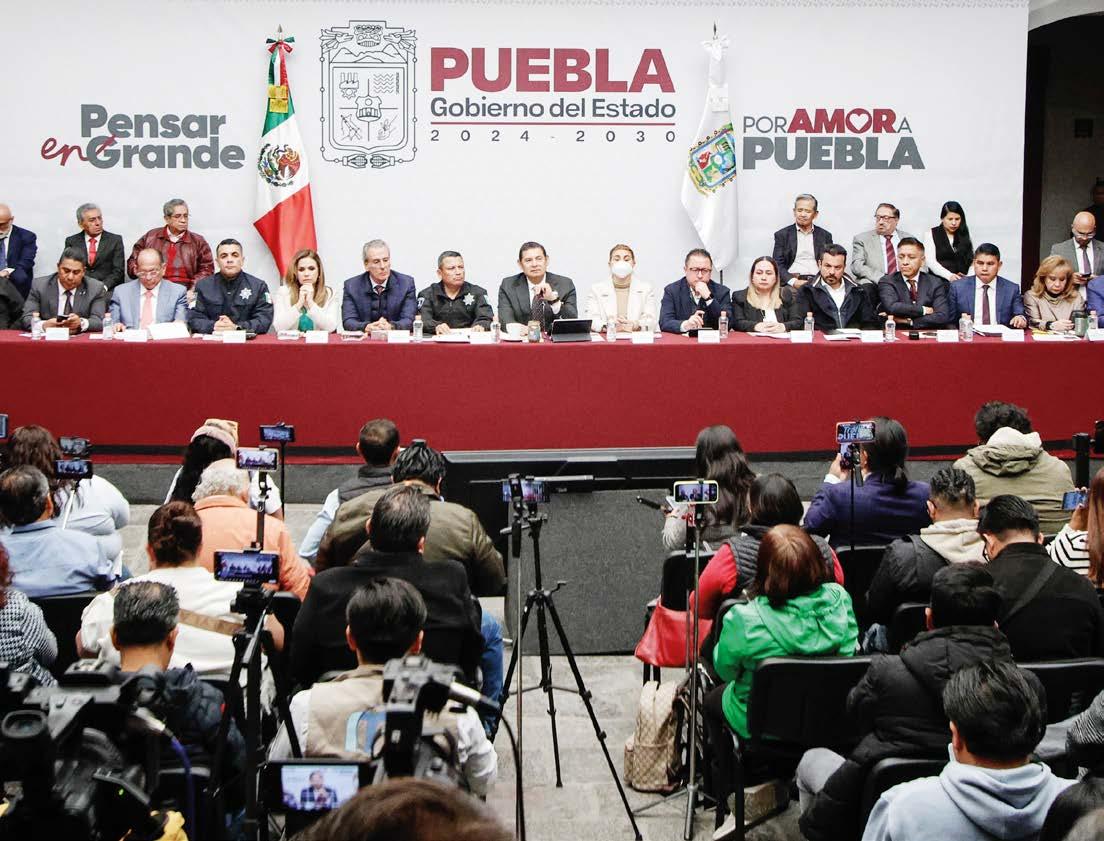 EL GOBERNADOR ALEJANDRO ARMENTA, ACOMPAÑADO DE FUNCIONARIOS ESTATALES, EL ALCALDE PEPE CHEDRAUI, LA PRESIDENTA DE COPARMEX PUEBLA, BEATRIZ CAMACHO, Y EL PRESIDENTE DEL CCE, JUAN PABLO CISNEROS, AFIRMÓ QUE LOS OPERATIVOS DE SEGURIDAD ATENDIERON 22 HECHOS EN PUEBLA, CON CINCO DETENIDOS Y SIN LESIONADOS, GRACIAS A UNA REACCIÓN OPORTUNA Y COORDINACIÓN. MARTÍN MAURICIO GARCÍA LEÓN | PÁG. 02 | FOTO: ÓSCAR RODRÍGUEZ/ENFOQUE