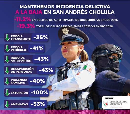 DESTACA la baja delictiva en San Andrés Cholula, con coordinación en seguridad.