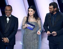 CAN YAMAN copresentó la gala inaugural de Sanremo y protagonizó un simbólico encuentro con Kabir Bedi