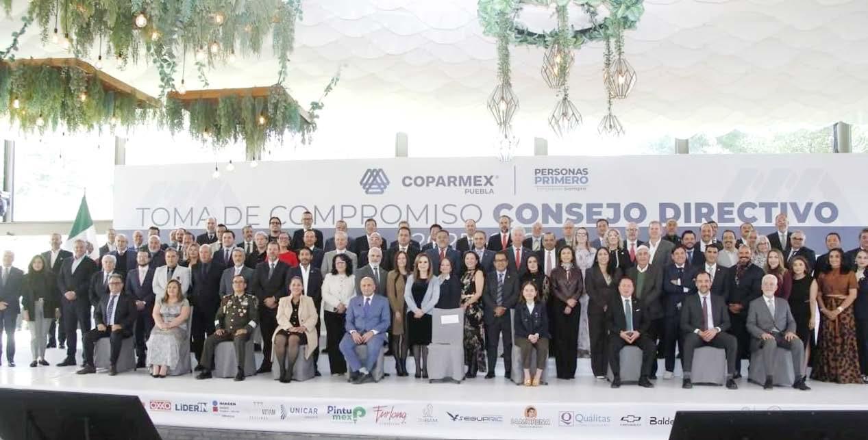 EN LA TOMA DE COMPROMISO DEL CONSEJO DIRECTIVO 2025-2027 DE COPARMEX PUEBLA, LA PRESIDENTA DEL ORGANISMO, BEATRIZ CAMACHO, LLAMÓ A LA UNIDAD ENTRE EMPRESARIOS Y GOBIERNO PARA COMPETIR Y ATRAER INVERSIÓN. AL ACTO ASISTIERON VÍCTOR CHEDRAUI, TITULAR DE DESARROLLO ECONÓMICO Y TRABAJO; JUAN PABLO CISNEROS, PRESIDENTE DEL CCE PUEBLA, Y LUPITA CUAUTLE, ALCALDESA DE SAN ANDRÉS CHOLULA. MARTIN MAURICIO GARCÍA LEÓN | FOTO: ESPECIAL