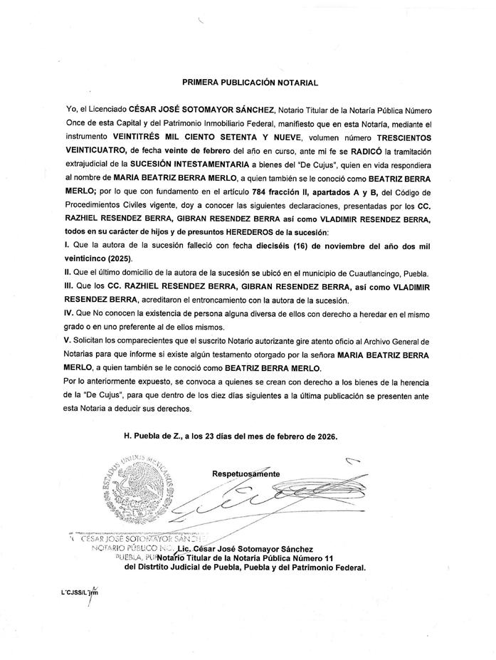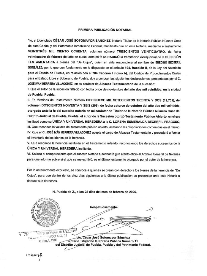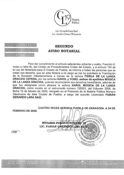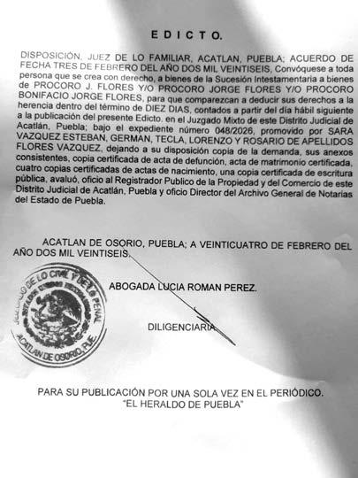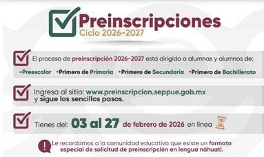 • Ma. Magdalena Velázquez Cortez Directora Comercial • Katia López Aguilar Gerente de Talleres Gráficos • José Viveros Mendóza El Heraldo de Puebla es una publicación de Ediciones Gráficas de Puebla S. de R.L. De C.V. Certificado de reserva de derechos al uso exclusivo del título (indautor): 04-2017-102412511000-101. Certificado de licitud de título y contenido: 17288. Editor Responsable: Erick Alain Becerra Rodríguez. Periodicidad: Lunes a Viernes. Distribución: Asociación General de Voceadores del Estado de Puebla. Se imprime en los talleres de Ediciones Gráficas de Puebla, ubicados en 34 poniente número 3530, colonia Aquiles Serdán. Oficinas de El Heraldo de Puebla: Calle 15 oriente no.422-1 Col. El Carmen C.P. 72530, Puebla, Pue. El contenido de cada artículo es responsabilidad de quien lo firma. Viernes 27 de febrero de 2026