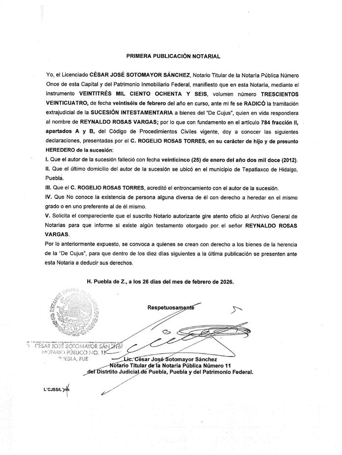 CUATRO VECES HEROICA PUEBLA DE ZARAGOZA, A 27 DE FEBRERO DE 2026.