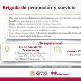 MARTÍN MAURICIO GARCÍA LEÓN. El Instituto del Fondo Nacional para la Vivienda de los Trabajadores (Infonavit) anunció que este viernes 27 de febrero, de 10:00 a 14:30 horas, llevará a cabo una brigada de promoción y servicio para asesorar a las personas sobre las distintas opciones crediticias y alternativas de pago. FOTO: ESPECIAL