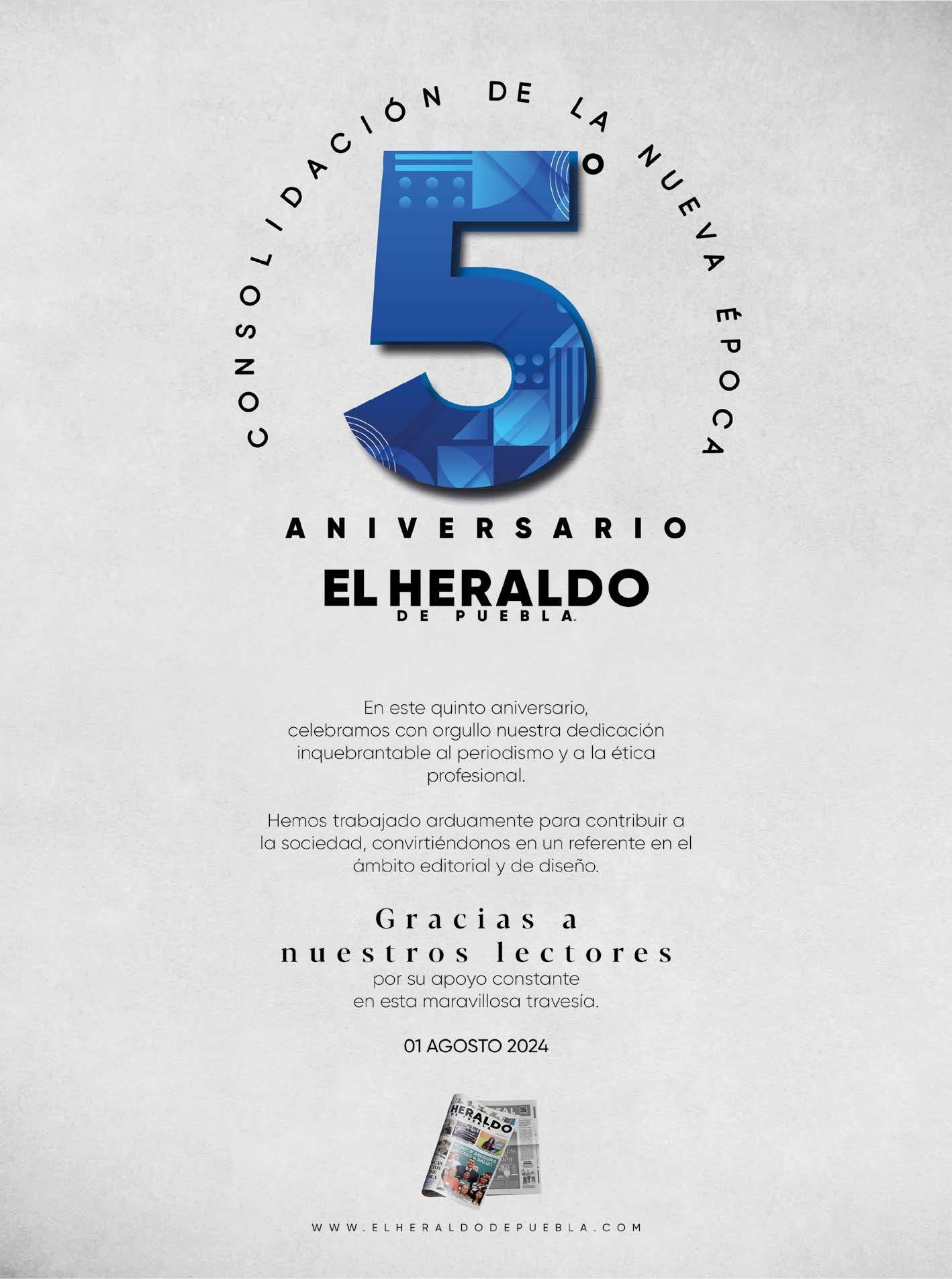 título y contenido: 17288. Editor Responsable: Erick Alain Becerra Rodríguez. Distribución: Sindicato General de Voceadores del Estado de Puebla. Se imprime en los talleres de Ediciones Gráficas de Puebla, ubicados en 34 poniente número 3530, colonia Aquiles Serdán. Oficinas de El Heraldo de Puebla: Calle 15 oriente no.422-1 Col. El Carmen C.P. 72530, Puebla, Pue. El contenido de cada artículo es responsabilidad de quien lo firma. elheraldodepuebla.com