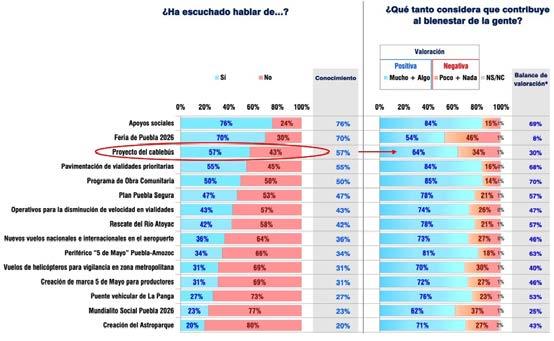 La encuesta más reciente del CISO Buap muestra una valoración mayoritariamente favorable (64%)y abierta a conocer el proyecto.