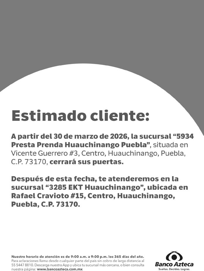 Periodicidad: Lunes a Viernes. Distribución: Asociación General de Voceadores del Estado de Puebla. Con domicilio en Calle 23 Oriente 1033, Colonia Bella Vista, 72500, Puebla, Puebla. Se imprime en los talleres de Ediciones Gráficas de Puebla, S. de R.L. de C.V. Con domicilio en Calle 34 poniente 3530, Colonia Aquiles Serdán, 72044, Puebla, Puebla. Oficinas de El Heraldo de Puebla: Calle 15 oriente no.422-1 Col. El Carmen C.P. 72530, Puebla, Pue. El contenido de cada artículo es responsabilidad de quien lo firma. Martes 31 de marzo de 2026