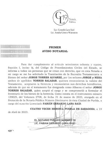 Disposición Juez Municipal Tehuitzingo, Puebla. Expediente Número 240/2023. Auto de fecha doce de abril del año dos mil veintitrés. JUICIO DE RECTIFICACIÓN DE ACTA DE NACIMIENTO, promueve ANGEL MOISES ZAFRA CHAVEZ, DATOS INCORRECTOS: Nombre. - Ángel Moisés Zafra Chaves, en el cual el nombre de Ángel se encuentra alterado; Lugar de Nacimiento.- en su casa habitación; Nombre del padre Gustavo Zafra; Nombre de la madre Juana Chávez; para quedar DATOS CORRECTOS. – Nombre. - Ángel Moisés Zafra Chávez, lugar de Nacimiento.Atopoltitlán, Tehuitzingo, Puebla, Nombre de los padres.- Gustavo Zafra García, y Juana Chávez García, termino tres días a partir de esta publicación, no hacerlo se tendrá por perdido su derecho. Copias, traslado, y auto admisorio a disposición en Secretaría del Juzgado. LA DILIGENCIARIA LIC. WENDI MICHACA ZAMBRANO. Nota: para su publicación por única ocasión en el periódico el Heraldo de Puebla. Tehuitzingo, Puebla, a diecinueve de abril del año dos mil veintitrés.