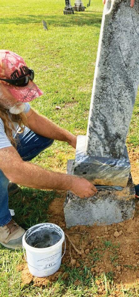 Jason Free, an employee of Bible Monument Co. of Searcy, did the restoration work. “His knowl-