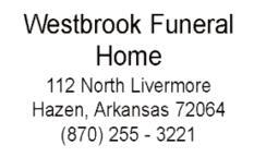 Funeral services were 11:00 A.M., Monday, April 3, 2023 at the Westbrook Funeral Home Chapel in Hazen. Visitation was from 10:00 to 11:00 A.M. prior to the service. Interment was in Oakland Cemetery in DeValls Bluff, Arkansas. Arrangements were by Westbrook Funeral Home of Hazen.